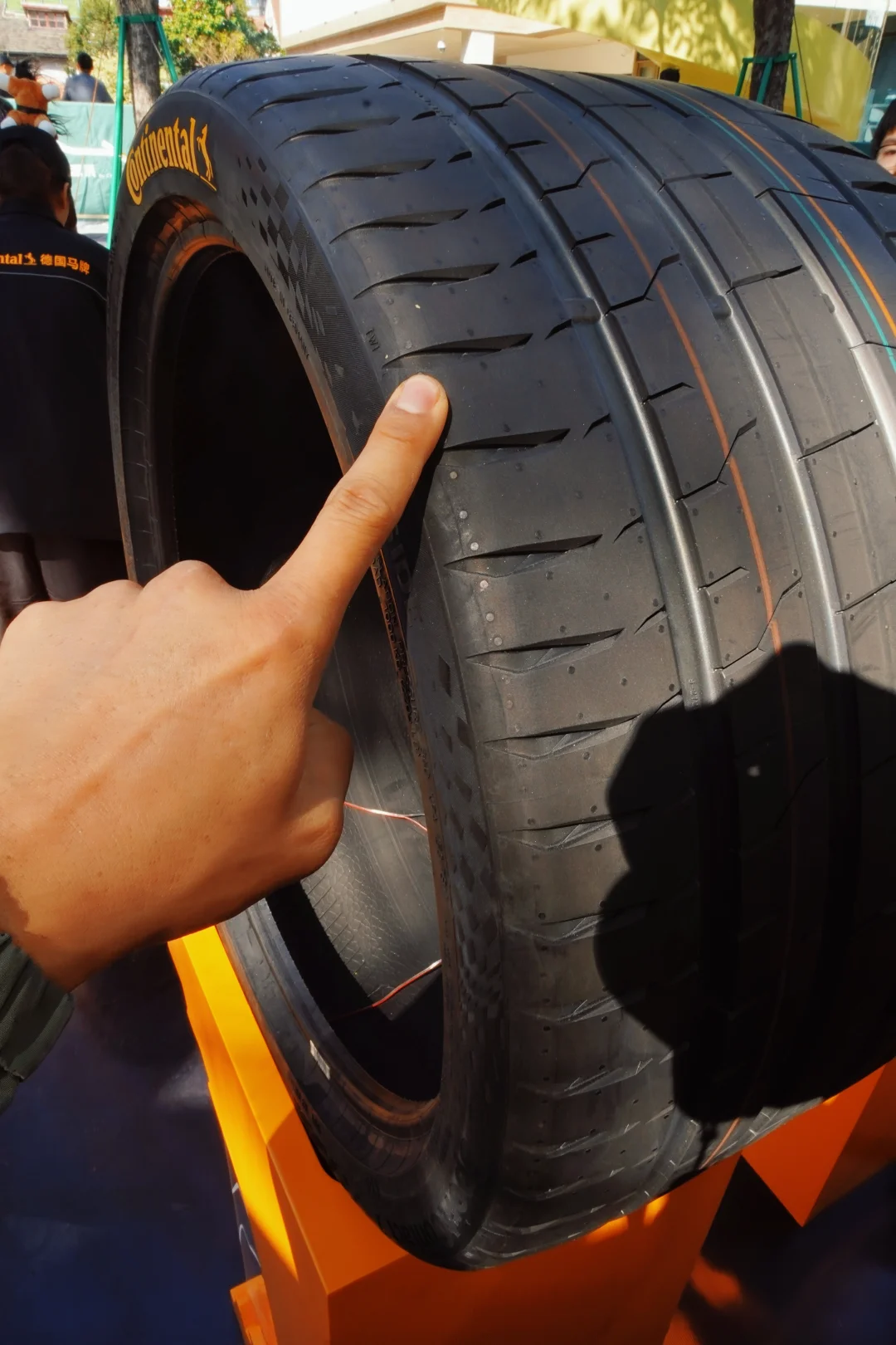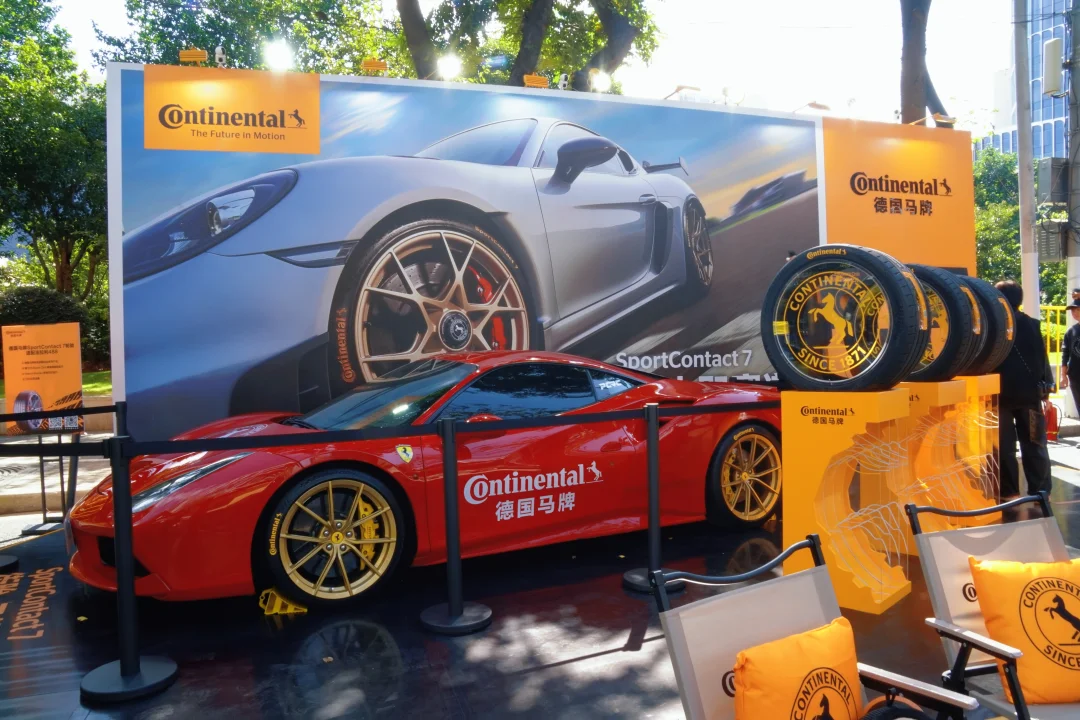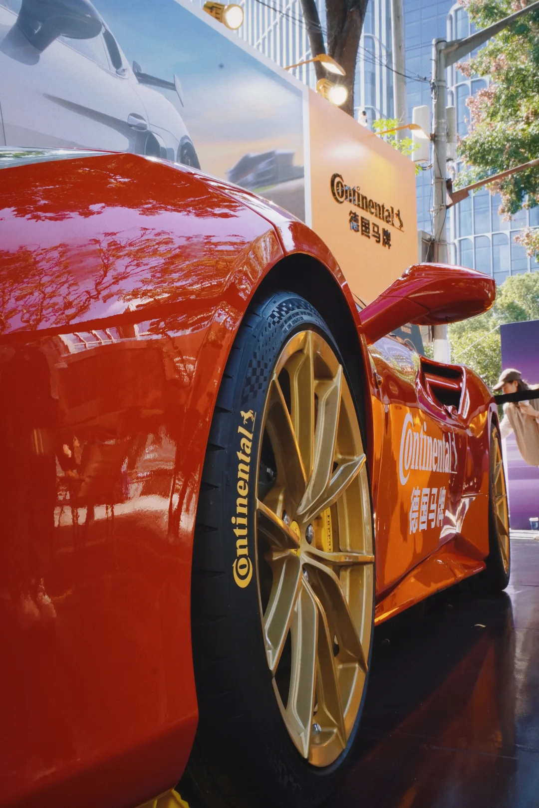 踏入德国马牌「形跃周末」快闪现场,第一感受就是现场展出的红色法拉利488太顶了,凑近看果然配了赛道级运动轮胎SC7——作为多年玩车党,早就听说它是性能专属,靓车配顶胎!