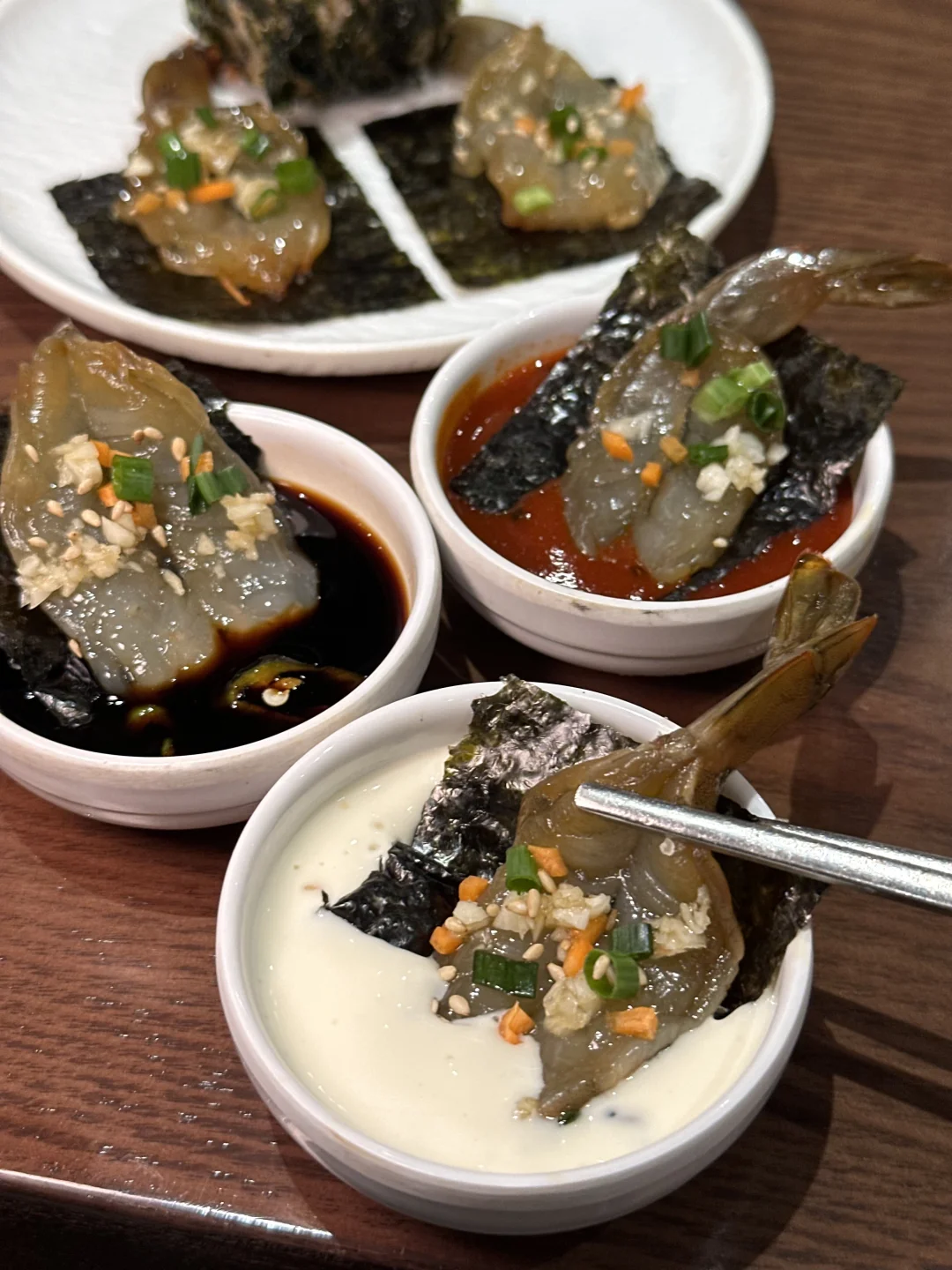 老板是韩国欧巴 开了很多年 每次来韩国街都会来吃 牛肋条又嫩又有咬劲!鲜切的! 海鲜拼盘,有鲍鱼,三文鱼,酱蟹等 还喝到了釜山同款米酒🍶 · 上海上海旅游攻略上海韩料上海韩国街