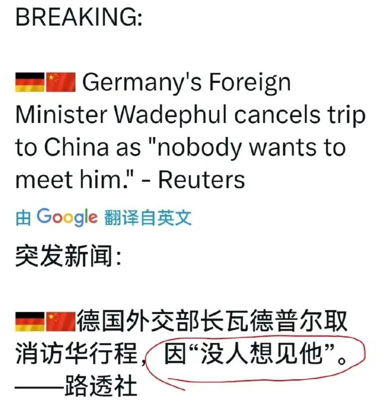 德国外长取消访华行程,被曝因为中方“没人想见他”。 这说法就颠倒黑白了,明明是瓦德菲尔发表挑衅中方主权的言论在先,有什么资格怪我们呢? 一次外交访问的取消,听起来像是小事,但德国外长瓦德菲尔没能成行的中国之旅,背后却波涛汹涌。 这事儿远不止改个日程那么简单,它像个放大镜,把中德关系里那些藏得挺深的矛盾和越来越空的信任账户,照得一清二楚。 当话赶话,说出来的话都成了互相施压的工具时,外交官们坐下来好好谈的传统路子,好像有点走不通了。 这事一开始,德国媒体就给出了一个很微妙的说法:中方“没人愿意见他”。一句话,就把一次复杂的沟通问题,轻飘飘地画成了一场单方面的冷遇,听着好像是中国失礼了。 可但凡了解点国际交往,就知道高层互访是场“双向奔赴”,行程没谈拢,说明双方在前期沟通上就卡住了。 把责任一股脑全推给对方,这不像是在陈述事实,更像是在玩一场舆论上的“甩锅”游戏。 这种做法想抢占道德制高点,结果却适得其反。它不但没解决问题,反而被看作是一种公开的抹黑,把火药味弄得更浓了。 这标志着,较量已经从会议室里,挪到了公开的媒体战场上,而信任这种金贵的东西,正在这个过程中被飞速消耗掉。 这场风波,其实是德国对华政策长期“拧巴”状态的一次爆发。你看,一边是德国经济离不开中国市场,每年几千亿欧元的生意,关系着大批德企的饭碗和几十万人的工作,来自商界的声音,一直是两国关系的定海神针。 可另一边呢?在政治上,德国却总发出一些和自己经济利益拧着来的声音。 比如就在这次访问计划前,德国高官还在日本对台湾、南海这些中国视作底线的问题指手画脚,在别的问题上也持续施压。 这就像一个人,想进别人家门,一只手在客气地敲门,另一只脚却已经抬起来准备踹门了。 想把经济上的合作和政治上的指责彻底分开,但这套玩法正变得越来越行不通,持续的公开挑衅,必然会啃食合作的根基,最后可能连“敲门”都没人应了。 面对这种言行不一,中国的反应也变了,不再是以前那样只是被动地解释或忍让,而是用行动划出了一条清晰的交往“底线”。 意思很明白:想好好谈、好好合作,可以,但前提是互相尊重,特别是要尊重我的核心利益。 当台湾这样的问题被定义为不容外人插嘴的“家务事”时,任何踩红线的言论,都会给双边关系带来实实在在的冷空气。这说明中国正在更加熟练地运用自己的影响力,去寻求一种更平等的对话方式。 中国的大门当然还是开着的,但门口多了一道“门槛”,欢迎的是真心来合作的客人,而不是上门来挑刺的“找茬者”。 这并不是要关上沟通的大门,而是在强调一个最基本的道理:有效的沟通,得从嘴上互相尊重开始,而不是居高临下的指指点点。 说到底,这次访问取消,是两国深层问题的一次集中发作,它提醒我们,在这个谁也离不开谁的时代,想长期维持经济上亲密、政治上对抗的“精神分裂”状态,几乎是不可能的。 未来的中德乃至中欧关系怎么走,很大程度上就看能不能把最基本的政治信任重新建立起来,以及能不能学会用一种真正平等和尊重的方式说话了。 参考资料: 德国外长临时取消本周末访华行程,原因是…….--2025-10-25 10:27·直新闻