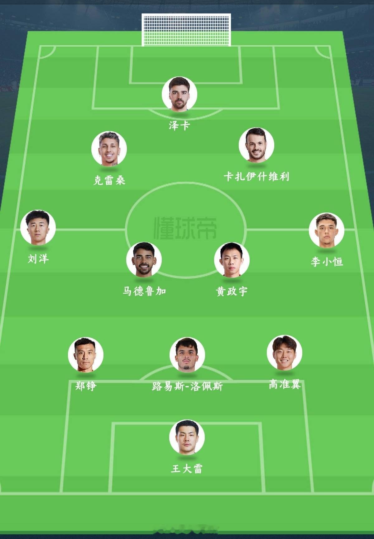 李小恒首发登场,黄政宇搭配马德鲁加后腰。
