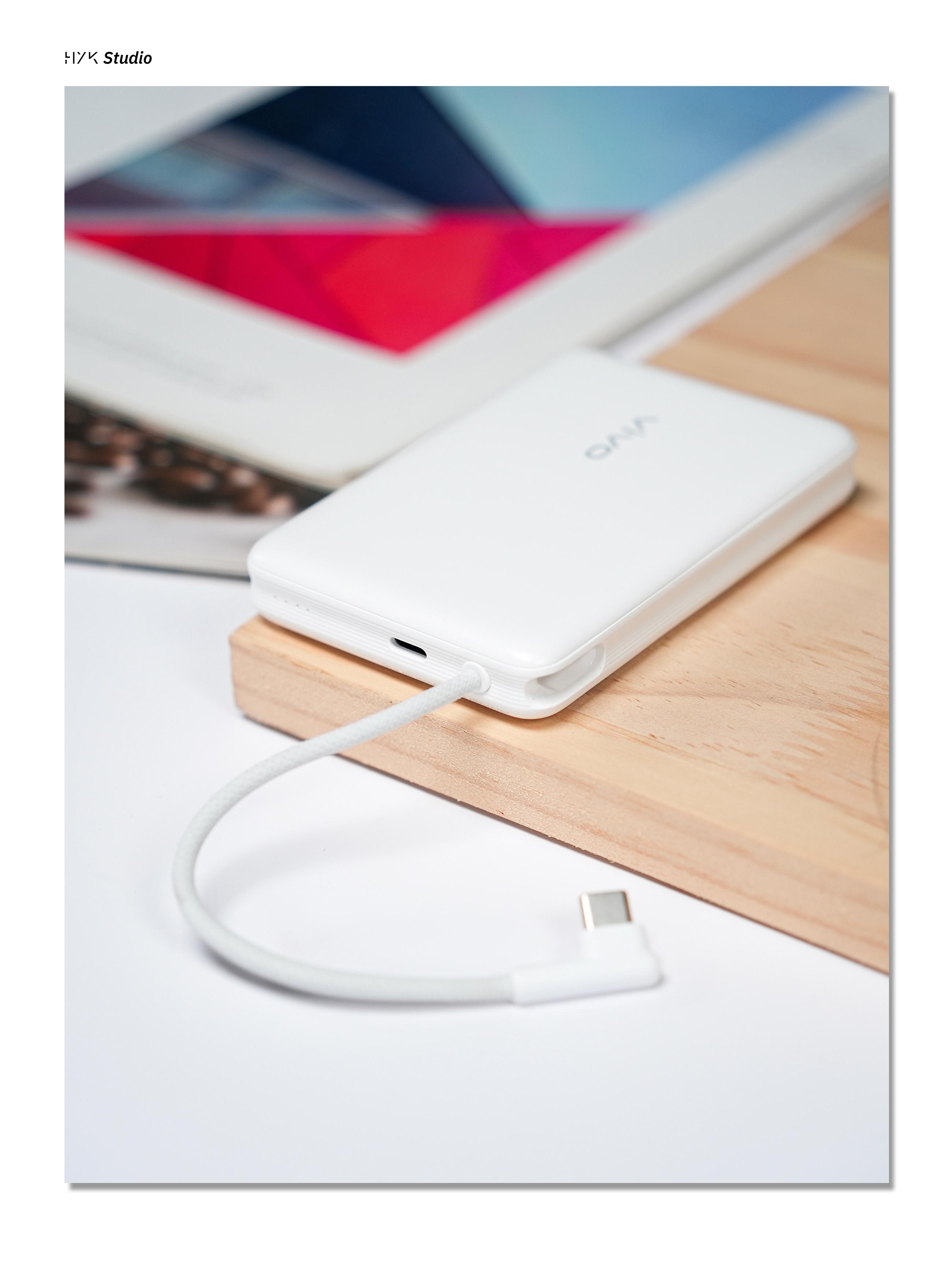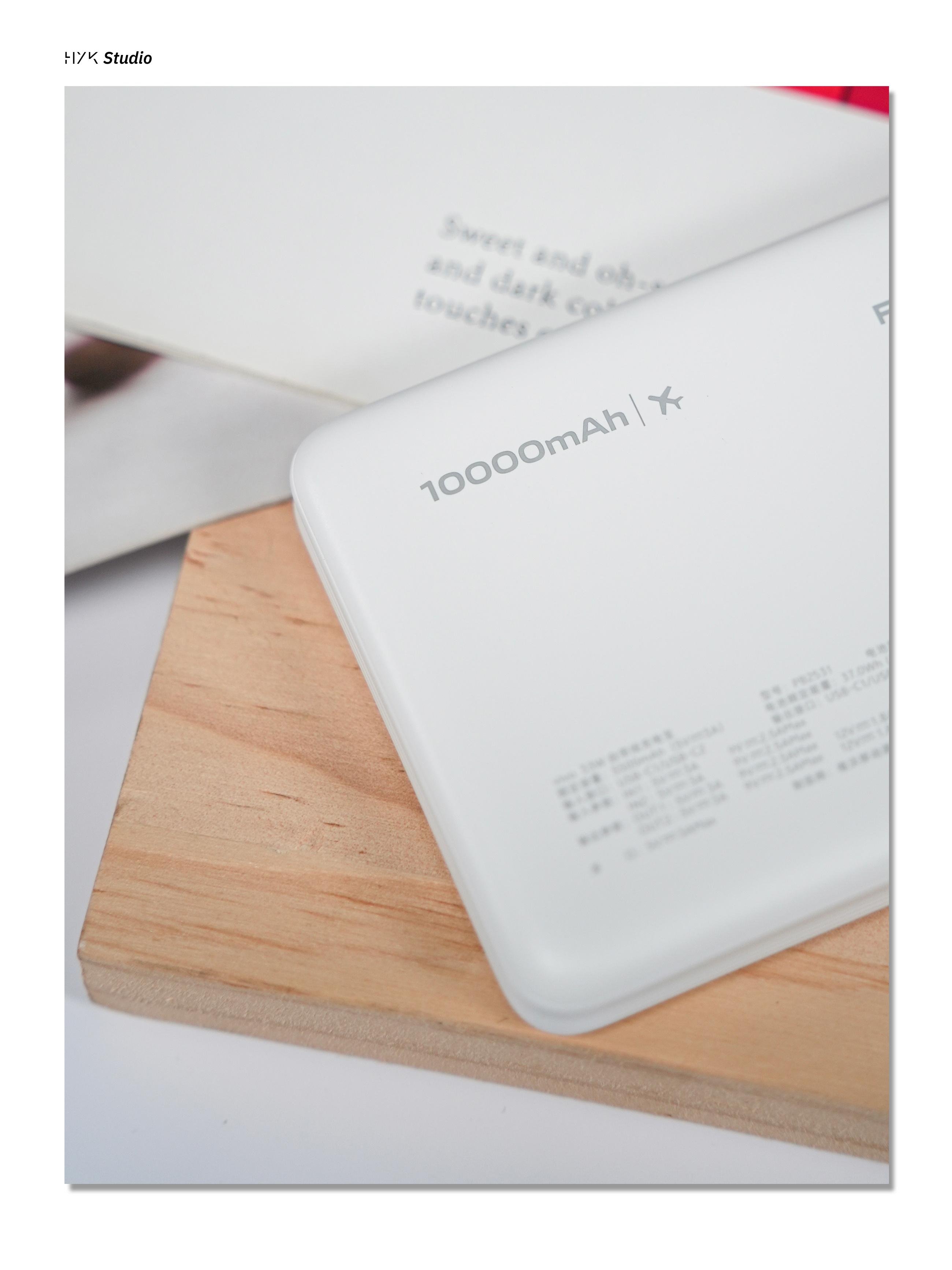 云峰白配色,纯白机身,有点像终年常白的雪域冰峰,纯净优雅。一体式快充线搭配上L型接口设计,充电方便且不会挡手。机身约1.5cm厚度,重量约177g重量,单手握持、出行基本没有压力,当然最重要的是它有3C认证,能上飞机。