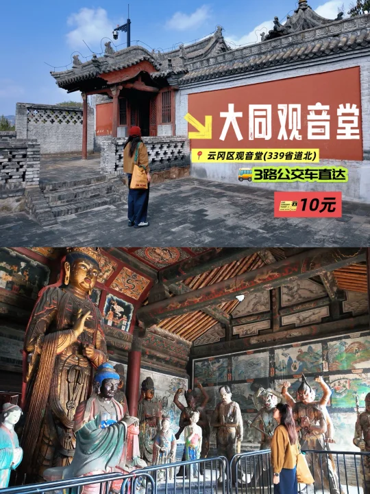 比起世人皆知的云冈石窟,这座辽代塑像的观音堂可谓鲜为人知,它就在坐落在“前往云冈石窟”路上的公路旁,3路公交车可直达!