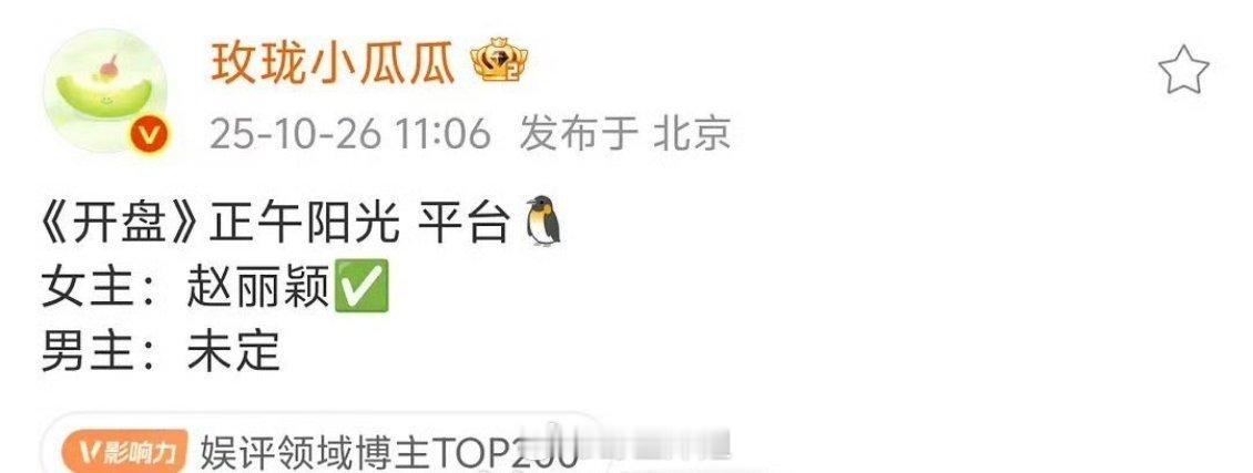 网传赵丽颖出演开盘