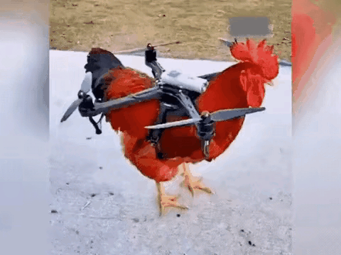 “无人鸡”,公鸡中的战斗鸡! 有一小伙儿突发奇想,如果把无人鸡装在一只公鸡身上是一种怎样的体验? 这台无人机是有4个螺旋桨,当无人机启动的时候,这只大公鸡还把两只爪子收了起来,头部保持平衡稳定,生怕头一歪就会被螺旋桨的叶片割到……无人战机 无人作战飞机 无人驾驶航空器 大疆农业无人车 防抖战斗鸡 大鸡无人机 飞行鸡