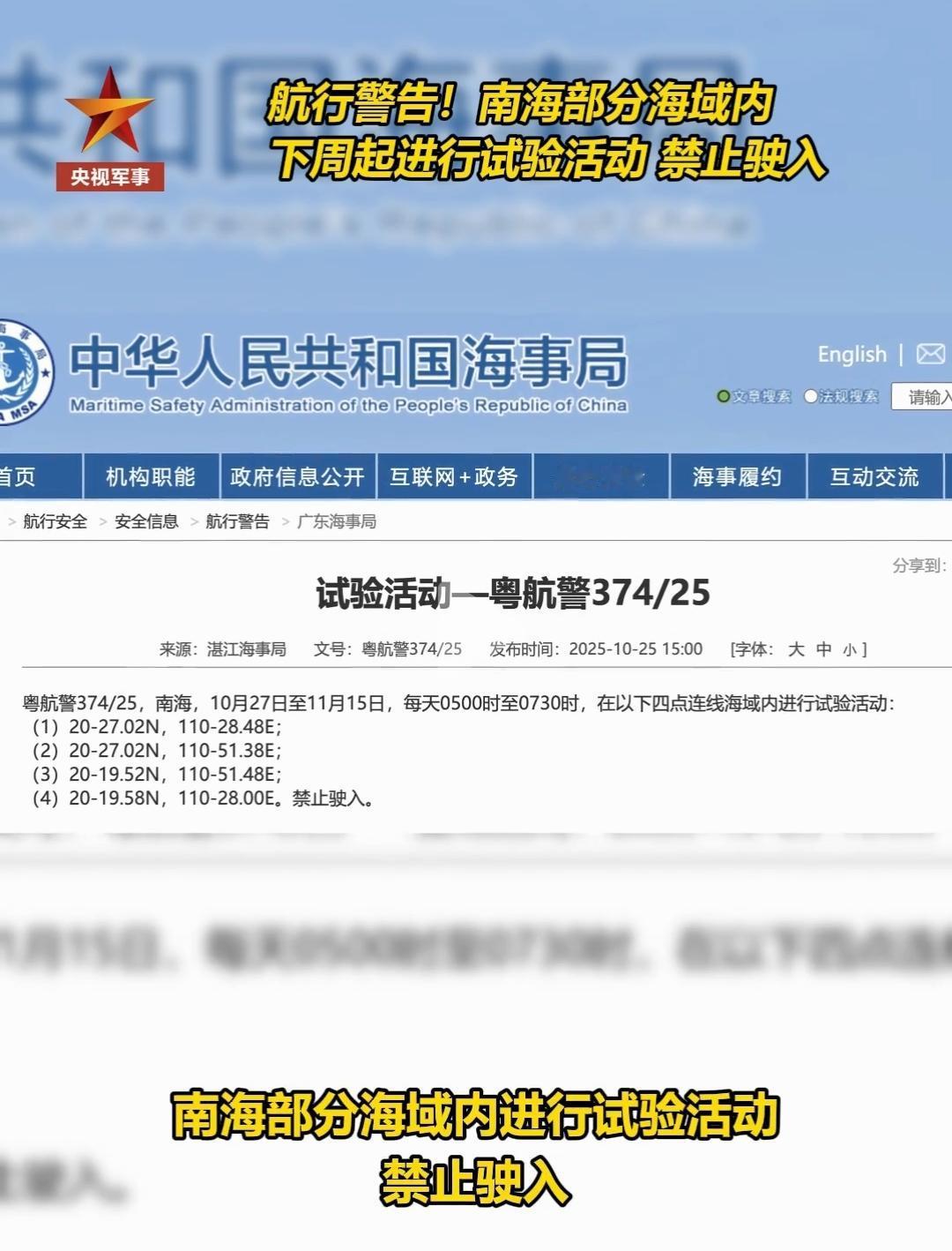 又要在南海测试新装备了。连续20天[舔屏]这焕新速度也太快了吧。 每天早上5-7:30,中国军工人真是起得比鸡都早睡得比狗都晚,就为给我们祖国筑起一道钢铁长城。 就是不知道这回测试的是啥?据说鲁渔17和闽渔18都在附近,难道是双船演练?[舔屏][舔屏] 点右上角关注我,我们一起去看这个魔幻的世界