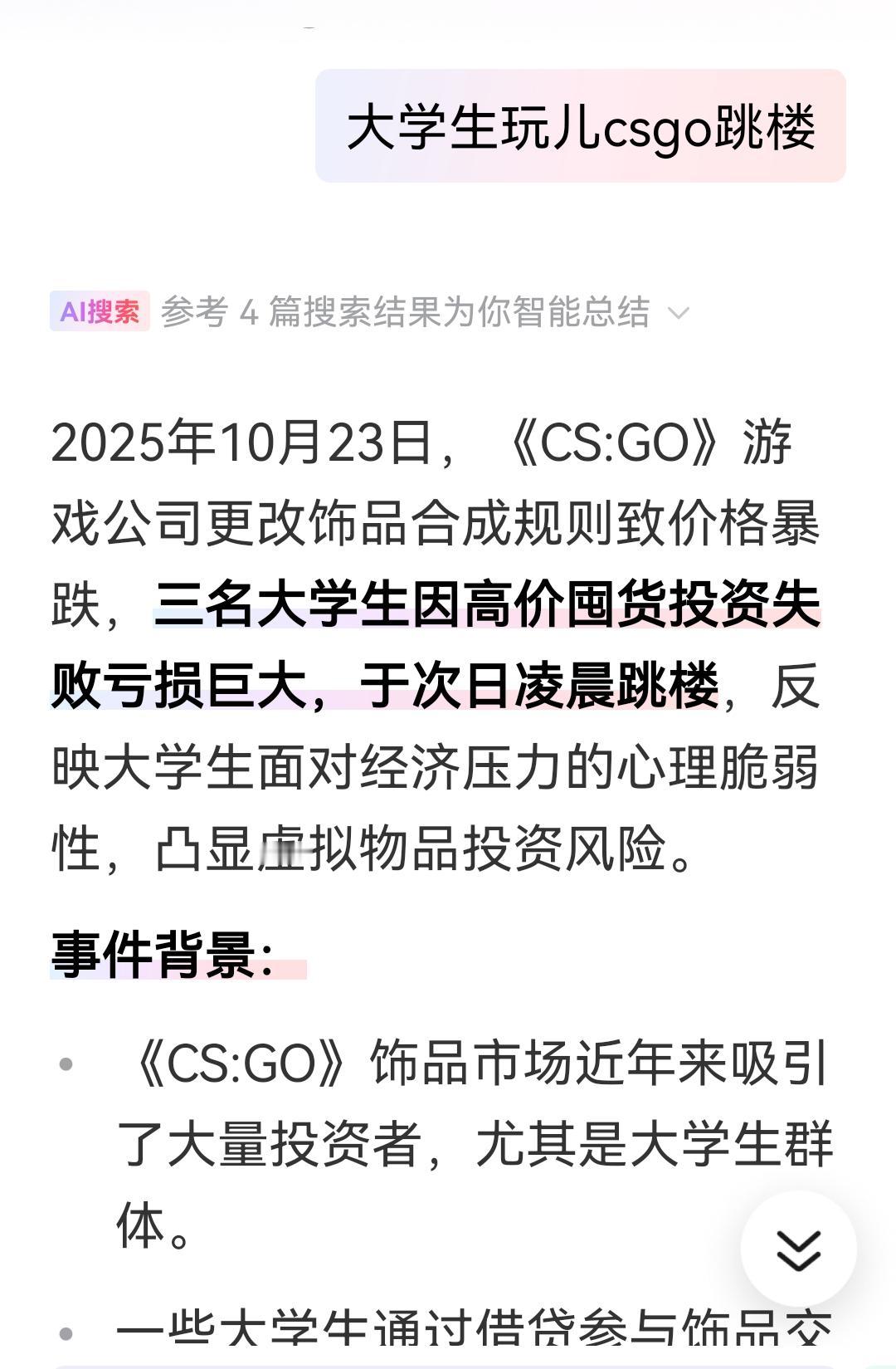原来因为是假的 结果查了下是真的 该学习的时候沉迷游戏 还投资虚拟产品 结果血本无归 最终…… 父母是不是在孩子们上大学后也多了解了解他们在干什么 而不是觉得考上大学就可以放手了 电子游戏真是害人匪浅!