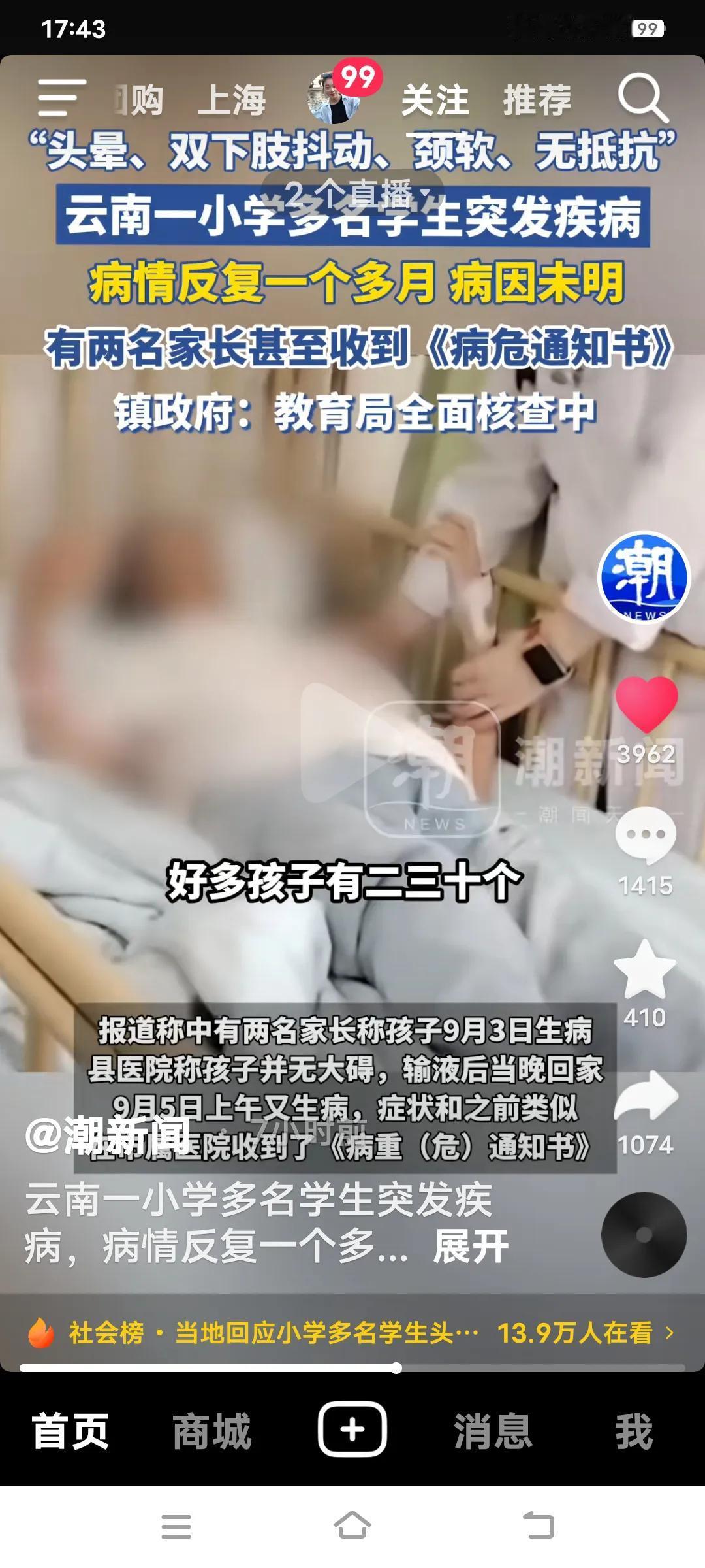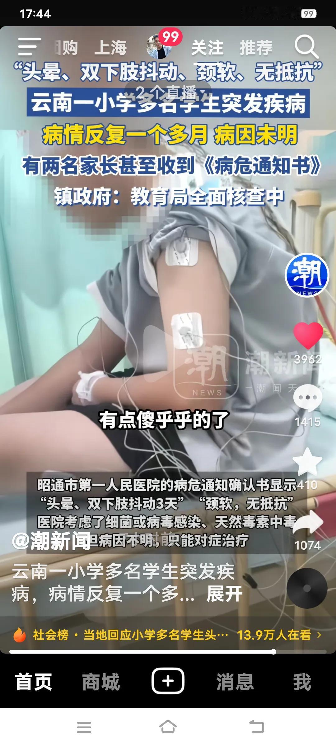 云南昭通彝良县洛泽河镇毛坪中心小学岭东村校区出大事了。六年级众多学生突然患病,出现高烧、呕吐、腹痛、四肢发软等症状。 据报道两名家长称有称,孩子9月3日生病就医,并无大碍,输液回家后,9月5日又突发与之前相似的症状。直至如今,医院仍未查出病因。有两名家长甚至收到了病危通知书。孩子们生病当天均在学校就餐,这背后的原因究竟是什么?希望能早日查明真相,让孩子们恢复健康。 镇政府:教育局全面核查中! 此类情况并非首次发生,此前其他学校也曾出现过类似状况。希望上级部门能够重视此事,毕竟关乎孩子的生命!家长们的担忧可想而知!昭通民办学校 彝良县新城小学 彝良示范小学