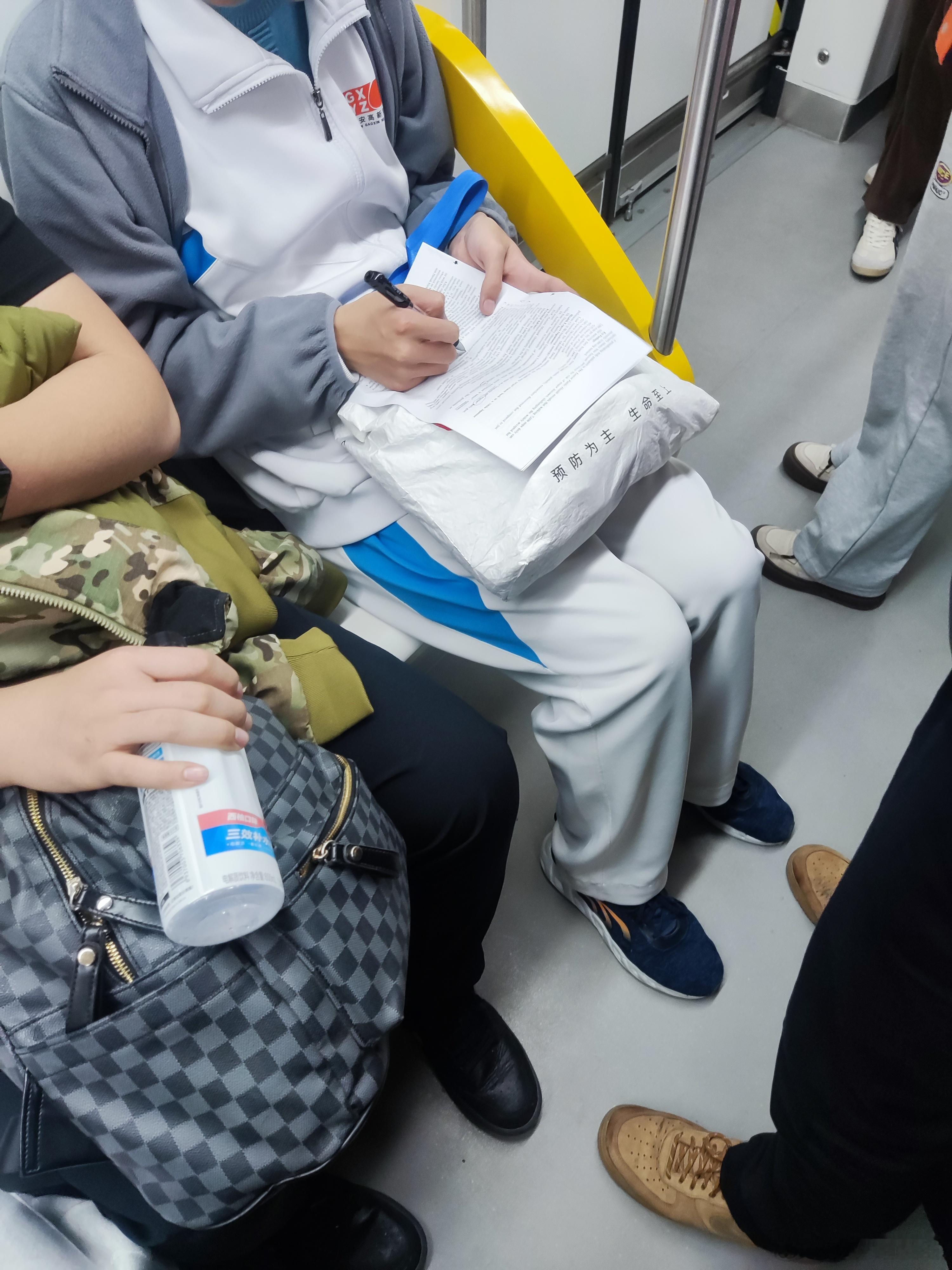 看看人家,坐地铁还做英语习题,我当年要是这么努力也不至于现在只会“how are you”“fine,thank you”“and you?”