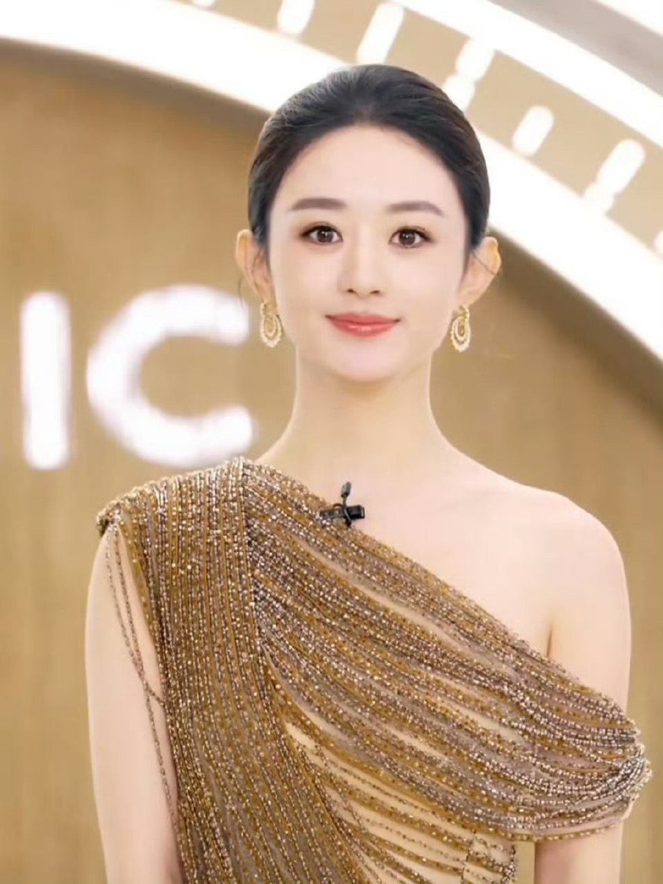 赵丽颖鎏金斜肩礼服赵丽颖大光明发型大光明都这么美