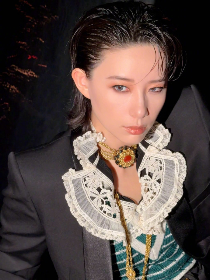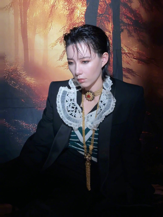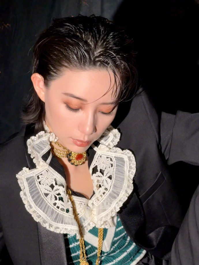 李斯丹妮戴了一条半米长的项链 不得不说,李斯丹妮太会穿了!半米长的项链搭配整体造型,帅气值直接拉满,感觉她就是舞台上最闪亮的那颗星!