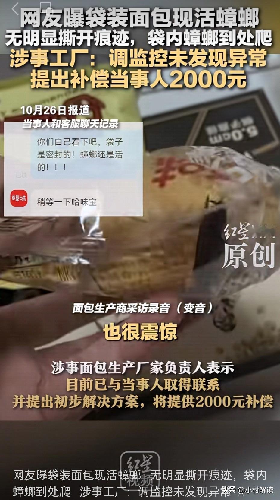 面包里面有活的蟑螂! 这个真的太可怕了,这种绝对就是生产过程当中有问题,没有任何借口,不可能在密封完整的情况下,居然混进去了活的蟑螂… 这种包装类食品我也经常买,这真的是头一次看到这样的新闻,前两天才看到有安心裤里面有活虫,今天又看到了面包里面有活蟑螂… 食品安全真的太重要了