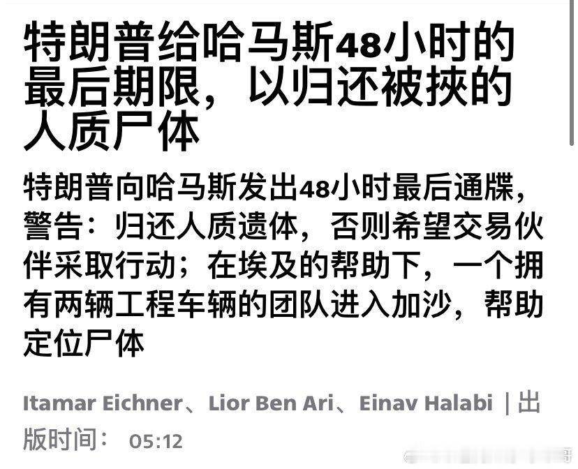哈马斯能遵守特朗普的最后通牒吗?似乎很难,否则埃及人也不会进入加沙帮忙找人质遗体了。