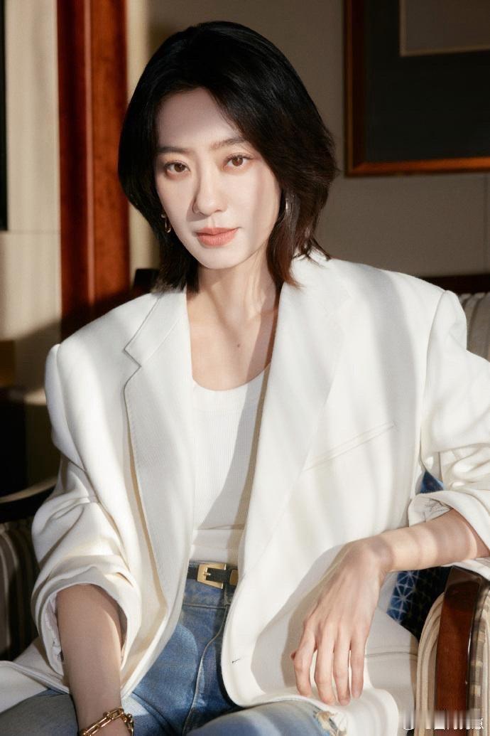 39岁张小斐剪了短发后变化也太明显了!一头利落短发超显精神,搭配白色西装与牛仔裤,简约穿搭里透着满满的高级感,气质直接升级。