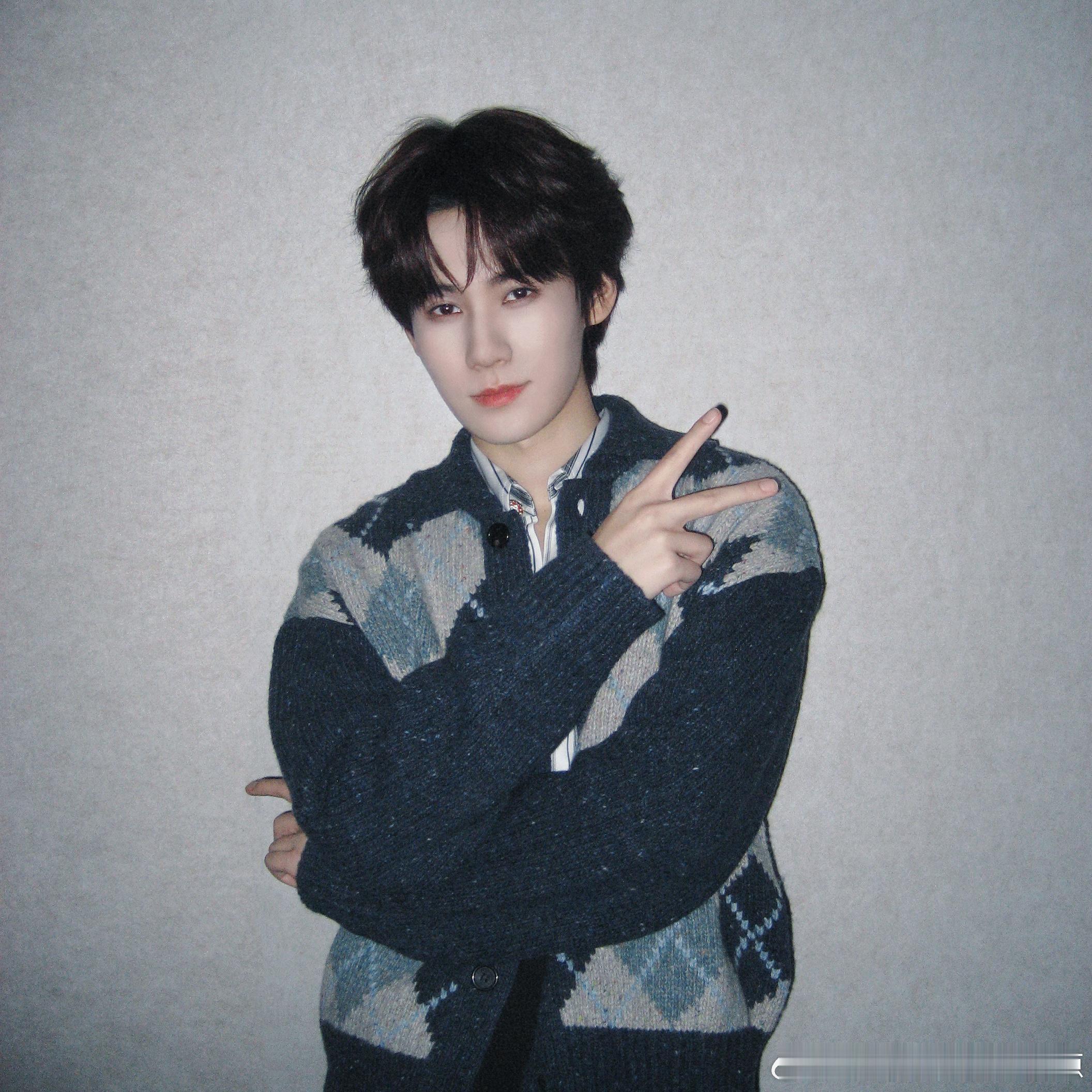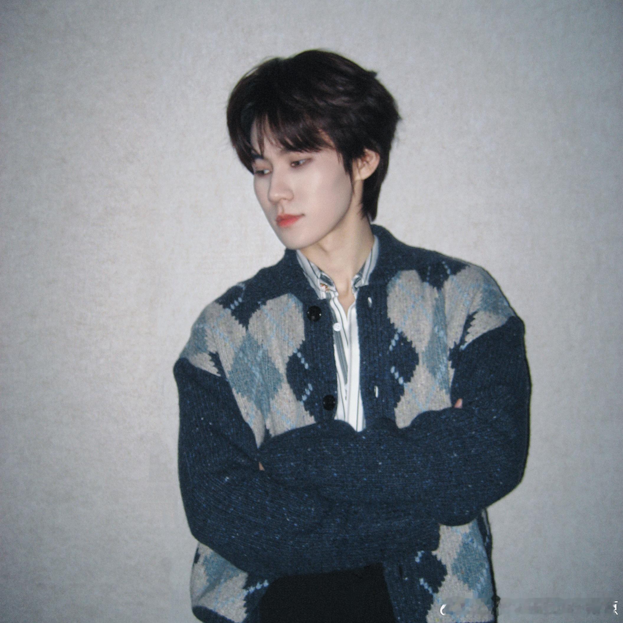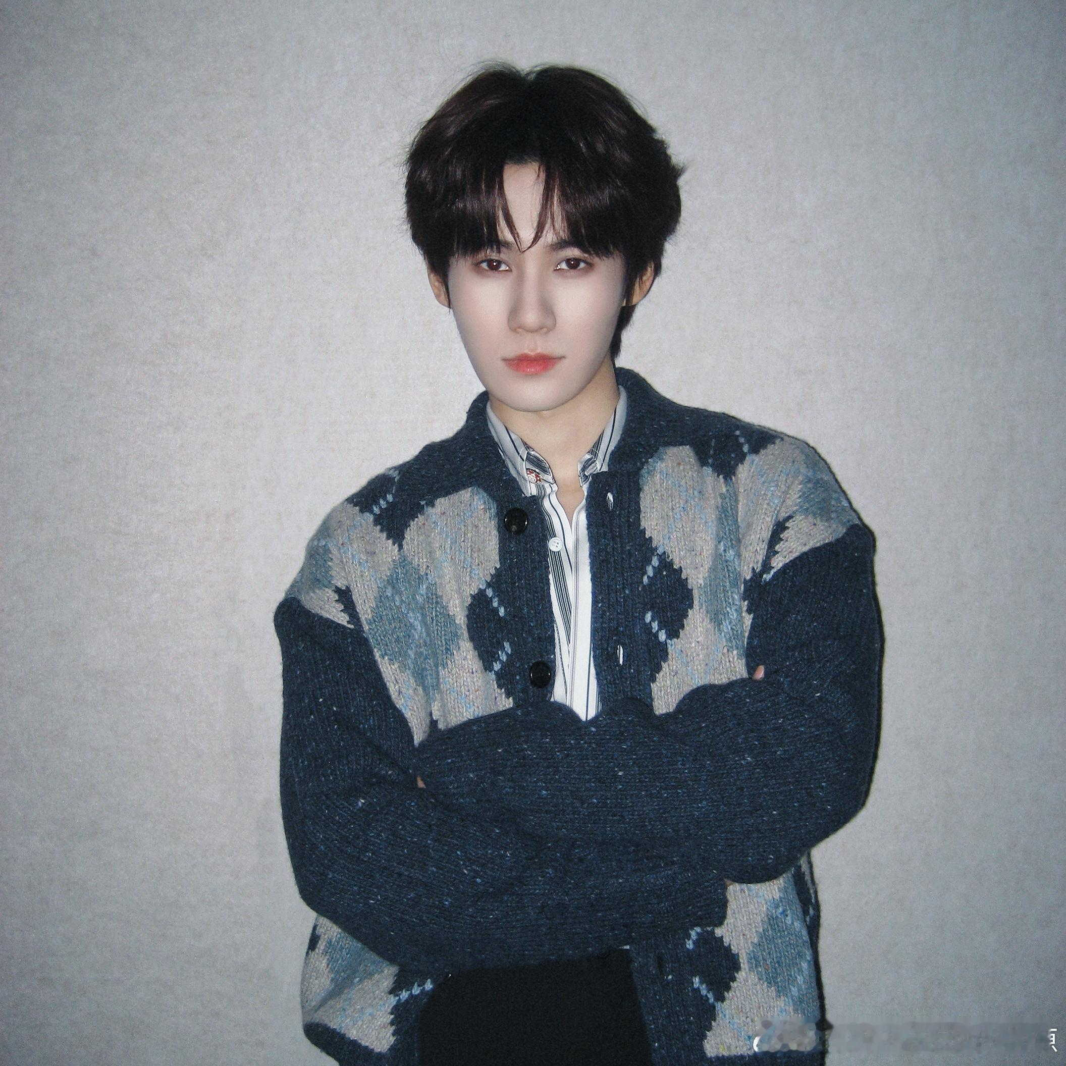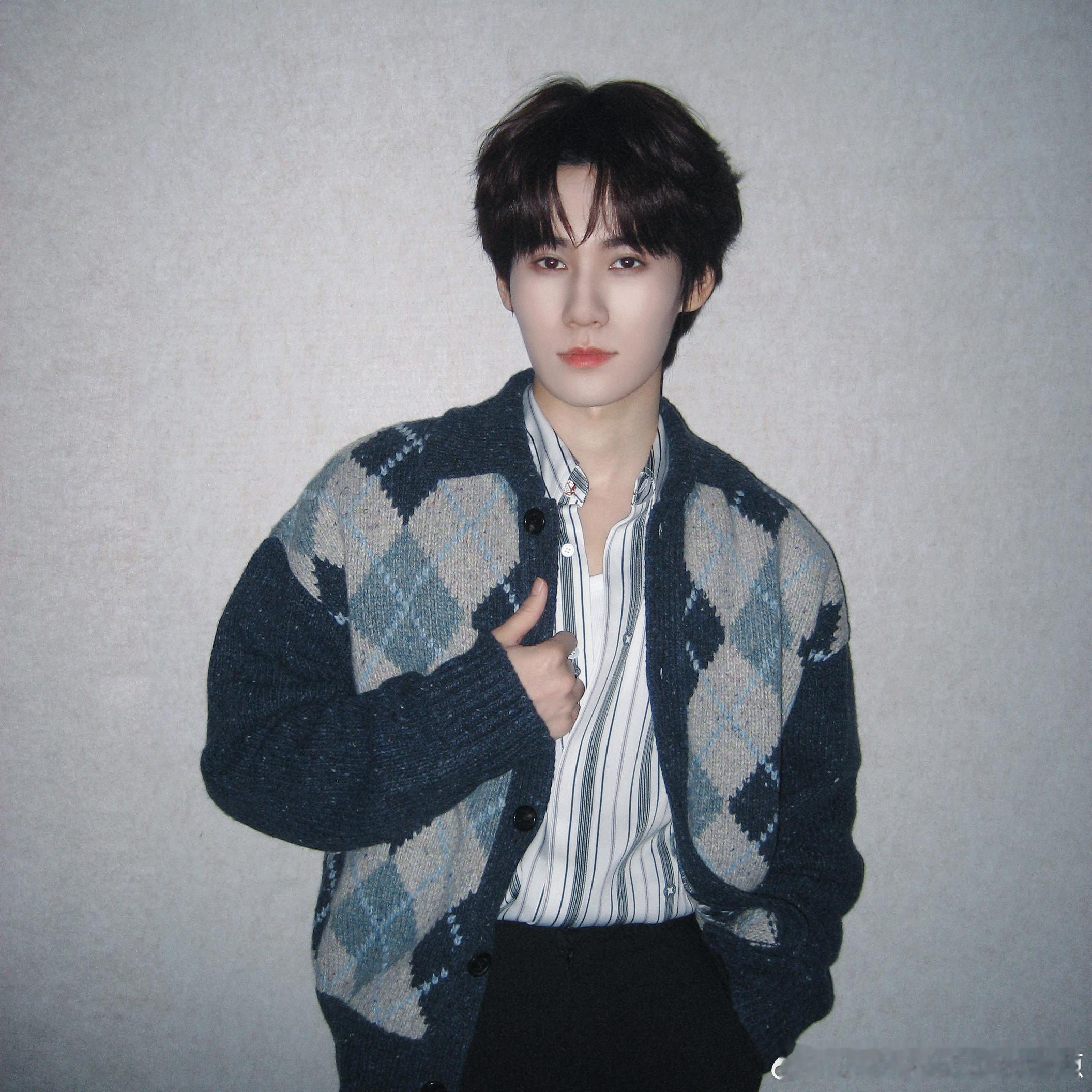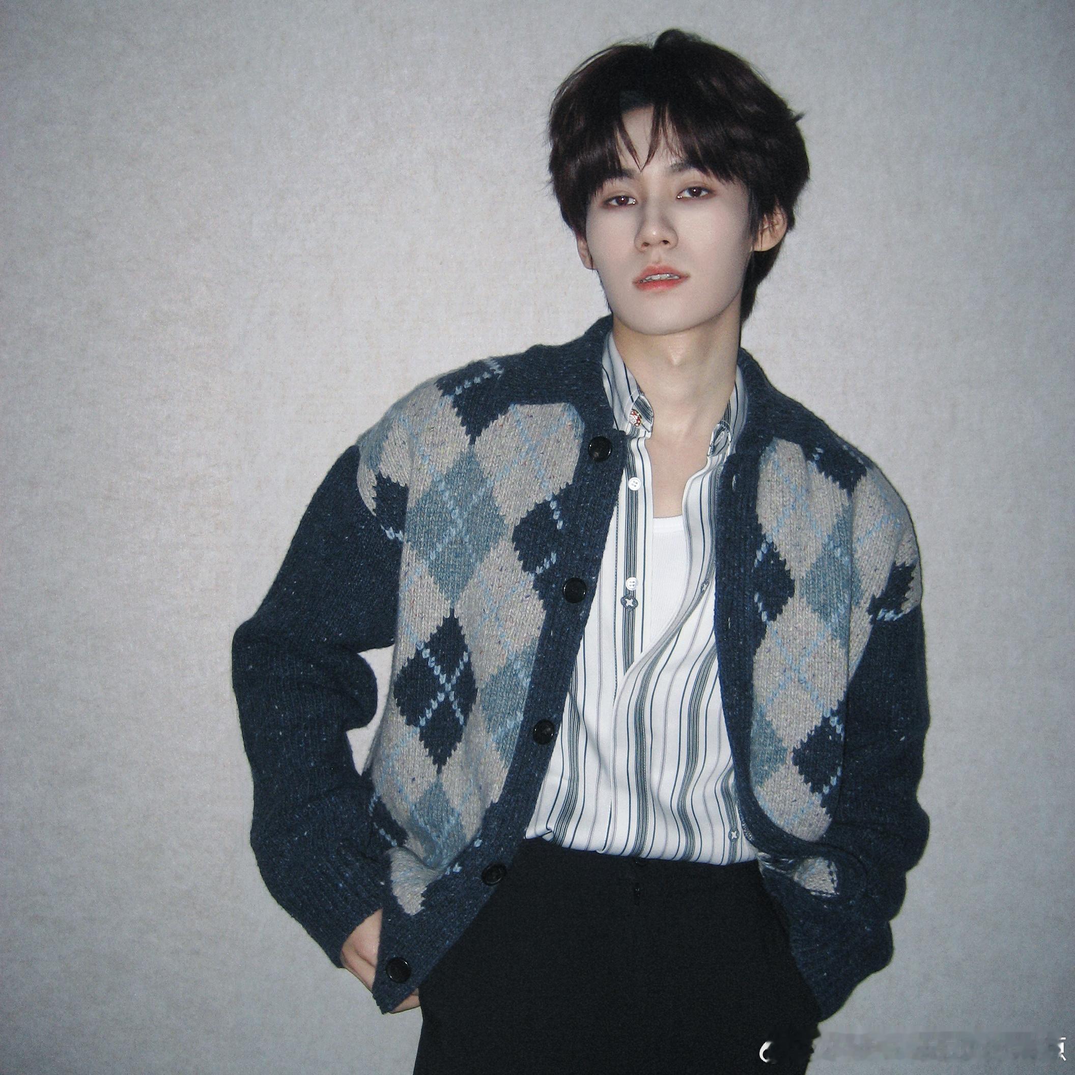 张真源📸inWE11DONE菱格纹纽扣针织开衫奔跑吧营业,休闲秋日随性穿搭