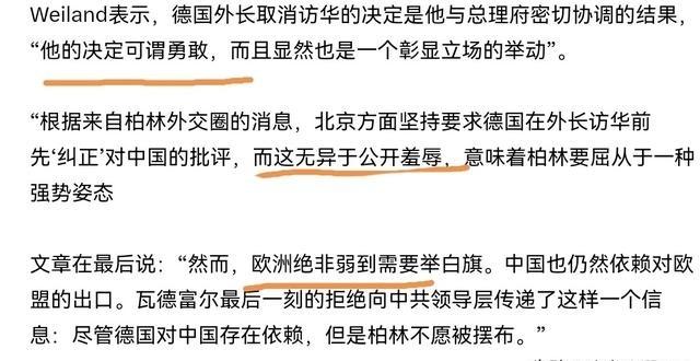 德媒点名对我们进行批评!德媒声称,我们意在“羞辱”德国,德国外长取消访华,其行为“勇敢”!10月25日,德媒刊文表示,德国外长访华行程取消根本原因是中方要求德国外长先纠正其言论、再访华,而这让德方无法接受。德媒表示,此举这无异于公开“羞辱”,但很显然,欧洲绝非弱到需要举白旗。 10月24日,德国外交部突然放出消息,外长约翰·瓦德普尔原定本周日飞北京的行程给延期了。这趟访华本是瓦德普尔上任后头一回去中国,原本计划见王毅之外,还想多拉几个高层聊聊贸易和供应链那些破事儿。可北京那边只确认了一个外长级会晤,其他的日程全没影儿。德国外交部发言人当场就说,这安排不够全面,干脆不去了。结果呢,第二天德媒就炸锅了,尤其是德国之声那篇评论,直戳我们,说这是中方故意设卡,要求瓦德普尔先改口那些对中国的批评言论,才准他来。这不就等于公开甩脸子,让德国低头吗?他们还补刀,说欧洲可不是软柿子,没必要白旗一举就认栽。 这逻辑听着就别扭。瓦德普尔这人,之前在路透社采访里没少放炮,点名中国在台湾海峡的行动搅和了国际规则,还抱怨稀土出口管制卡了德国汽车业的脖子。8月份他去日本时,又在东京记者会上说中国单方面改亚太边界,越来越强势。这些话搁谁听都刺耳,尤其是台湾地区那块儿,瓦德普尔直呼北京破坏现状,简直把台湾地区防务部的军售事儿当借口大肆渲染。德国作为欧盟老大,本来中德贸易额去年就破3000亿欧元,中国还是它最大贸易伙伴,可瓦德普尔偏偏爱在敏感点上踩雷。结果访华前,北京要他摆正态度,这在德媒眼里就成了“羞辱”。他们觉得,德国外长去中国是给面子,你得全盘接纳他的议程,还得忍着他的批评。要是中方提条件,那就是霸凌。哎,这套双标玩得溜啊。 德媒这调调其实暴露了他们骨子里的优越感。德国之声文章里明摆着说,瓦德普尔最后一刻叫停,是给北京高层递了张底牌:德国离不开中国市场,但也不会当孙子。其他报纸像《先锋报》也跟风,夸这决定正确,欧洲得硬气点,别稀里糊涂就上飞机,等着别人赏脸接见。说白了,在他们看来,外交就是西方定规矩,中国得照办。瓦德普尔上任才五个月,新总理默茨内阁刚稳住脚,就想借这趟访华刷存在感,谈什么“价值外交”。可价值在哪儿?德国企业在中国投资上万亿,宝马大众那些巨头天天哭穷供应链断裂,现在外长又来搅局,这不是自己给自己找不痛快吗?更别提全球经济低迷,德国通胀刚压下来,能源危机余波还在,偏偏在台湾问题上站队那么偏,难怪日程谈不拢。 这事儿本质上是国与国交往的底线问题。外交不是请客吃饭,得对等尊重。你德国想合作,行啊,但不能一边伸手要市场,一边在台湾海峡军演上指手画脚。瓦德普尔那些言论,直接碰了红线,北京自然得亮明立场。德媒倒好,把正常要求说成羞辱,还给瓦德普尔贴“勇敢”标签。勇敢?说实话,这更像赌气。德国社民党外交发言人阿迪斯·阿赫梅托维奇就直言,这步棋对缓和中德紧张没啥好处,尤其供应链这么脆弱的时候。德国央行行长纳格尔也敲警钟,贸易争端升级,欧盟得准备反制工具。可瓦德普尔呢?10月26日他转头主持欧盟视频会,继续念叨中俄动态,行李一收拾就飞华盛顿,跟美方聊跨大西洋议题。台湾简报带了一箱子,估计还得继续在那儿添乱。 回头看中德关系,这几年本来就磕磕绊绊。2024年默茨访华时,双方谈得还算投机,签了电动车关税的谅解备忘录。可瓦德普尔一上台,就变味儿了。他党团副主席时,就爱在议会大厅里抨击中国军力扩张,数据图表甩一脸。稀土那事儿更典型,德国汽车业离不开中国供应,去年出口量占全球80%,现在管制一紧,他们就急眼。德媒文章里还阴阳怪气,说中国这是用经济牌施压,欧洲得醒醒,别再依赖。可话说回来,谁让德国自己战略短视,早几年没多囤货,现在后悔也晚了。欧盟层面,冯德莱恩去年底的“去风险”报告,本意是分散供应链,结果执行起来乱七八糟,德国企业叫苦连天。瓦德普尔这趟访华泡汤,正好戳中痛点,金融时报评论说,这是默茨内阁的早期挫折,供应链隐忧得赶紧补课。