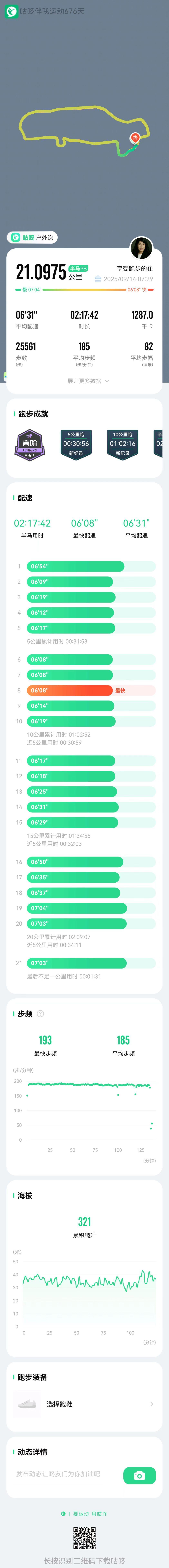 我半马进步很多 5月份第一次半马,2小时30分 9月份第二次半马,2小时1
