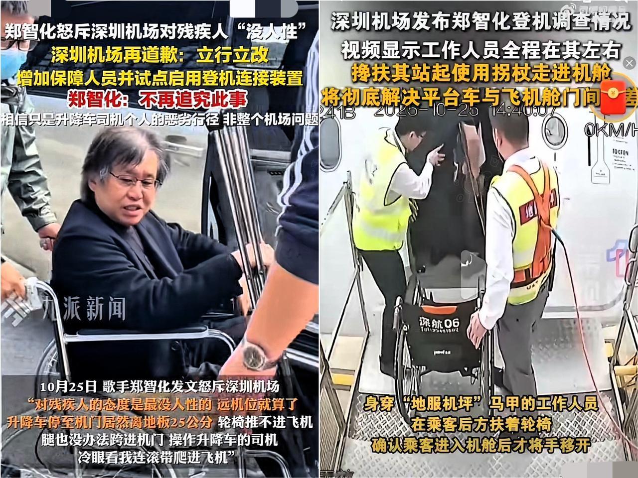 万万没想到深圳机场直接把视频给放了出来 机场的工作人员把郑智化安安稳稳的扶进机舱,他却说机场人员没人性,看着他“连滚带爬”进机舱,结果深圳机场直接放出视频——工作人员明明稳稳当当把他扶进了飞机! 享受着贴心服务,转头却把机场挖苦一顿,这真不是公众人物该有的样子。更难得的是,深圳机场没辩解,还第一时间道歉说要改进,这格局一下子就显出来了。一直觉得深圳是个有温度、有包容度的城市,连机场都带着这份大气! 郑智化啊,别让一时情绪毁了几十年积累的好口碑!对此你怎么看?