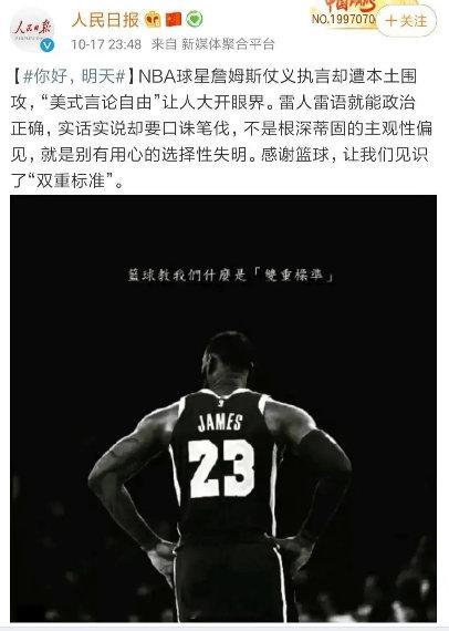2,没有任何代言,詹姆斯却主动为大洋彼岸的中国发声,让NBA不要乱说话,以个人身份与整个联盟对抗,打击美国佬肆无忌惮大嘴巴的臭毛病,NBA历史第一人,也是历史唯一一人;