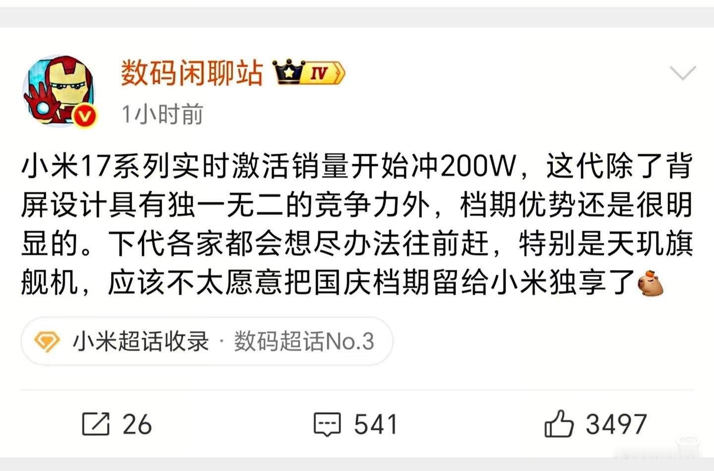 数码闲聊站[超话] 小米17系列冲200w!