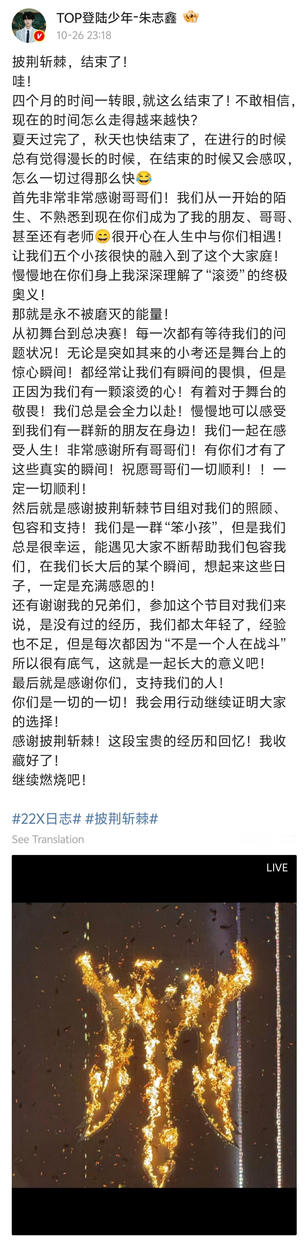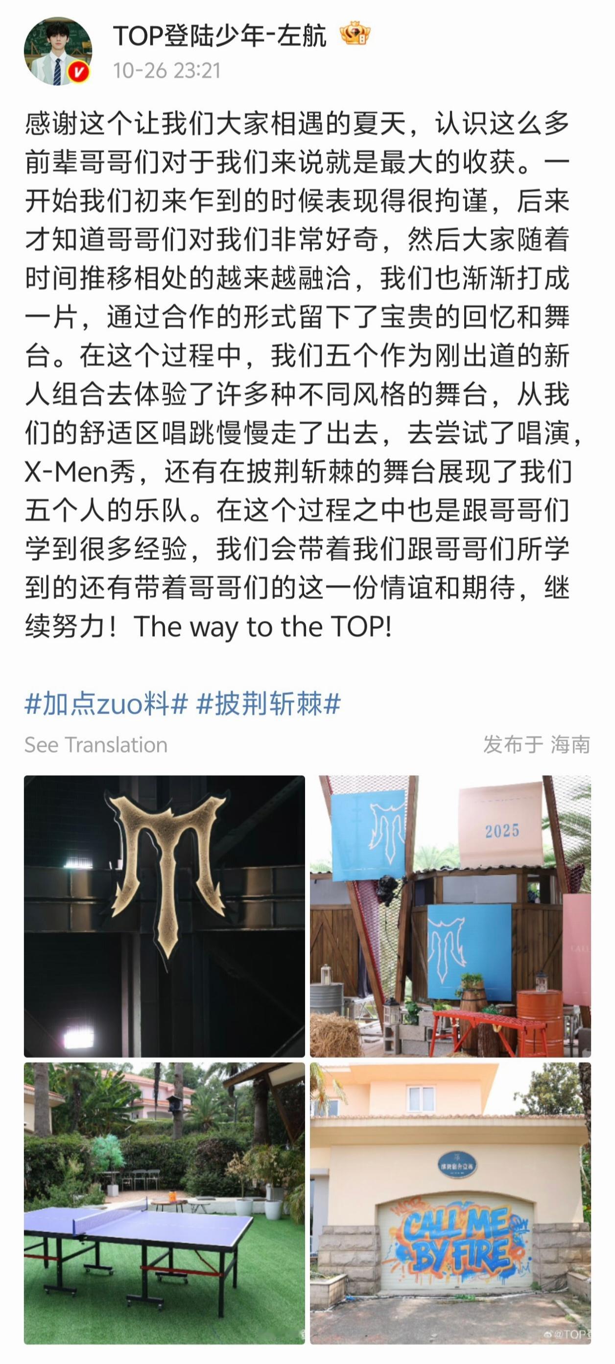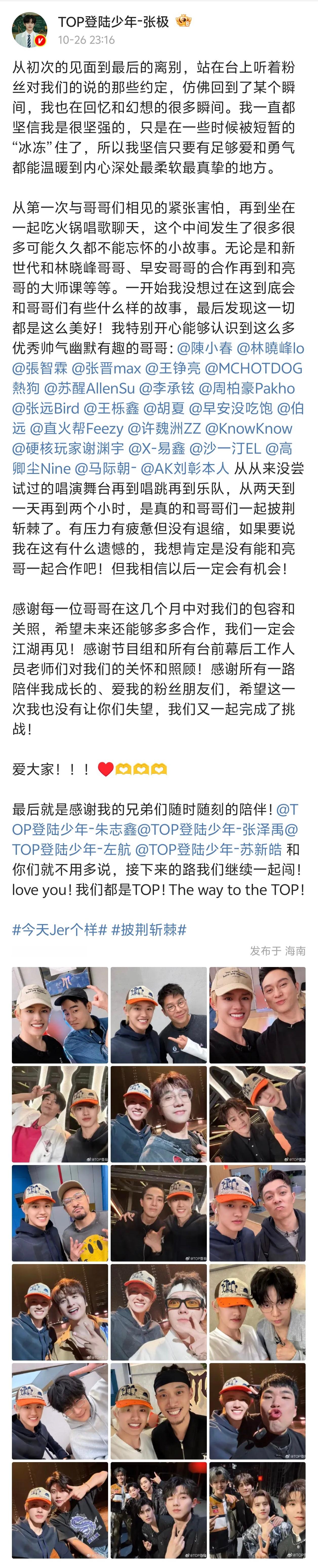 TOP登陆少年发长文告别披荆斩棘苏新皓〡朱志鑫〡左航〡张泽禹〡张极