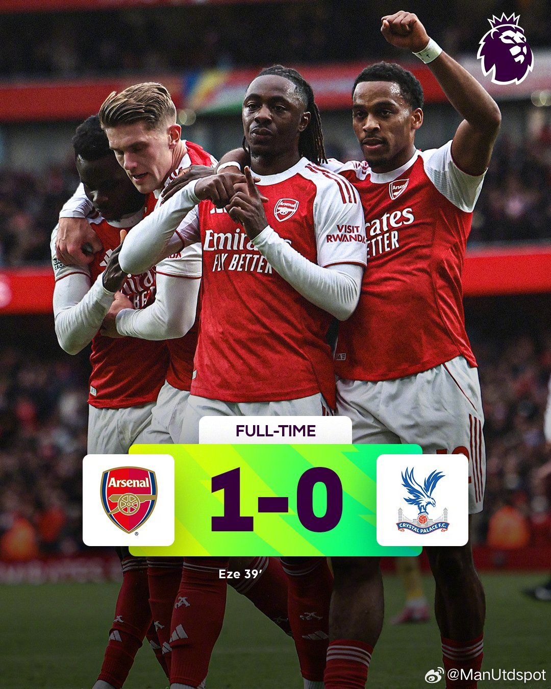 ManUtdspot[超话]阿斯顿维拉1比0曼城阿森纳1比0水晶宫