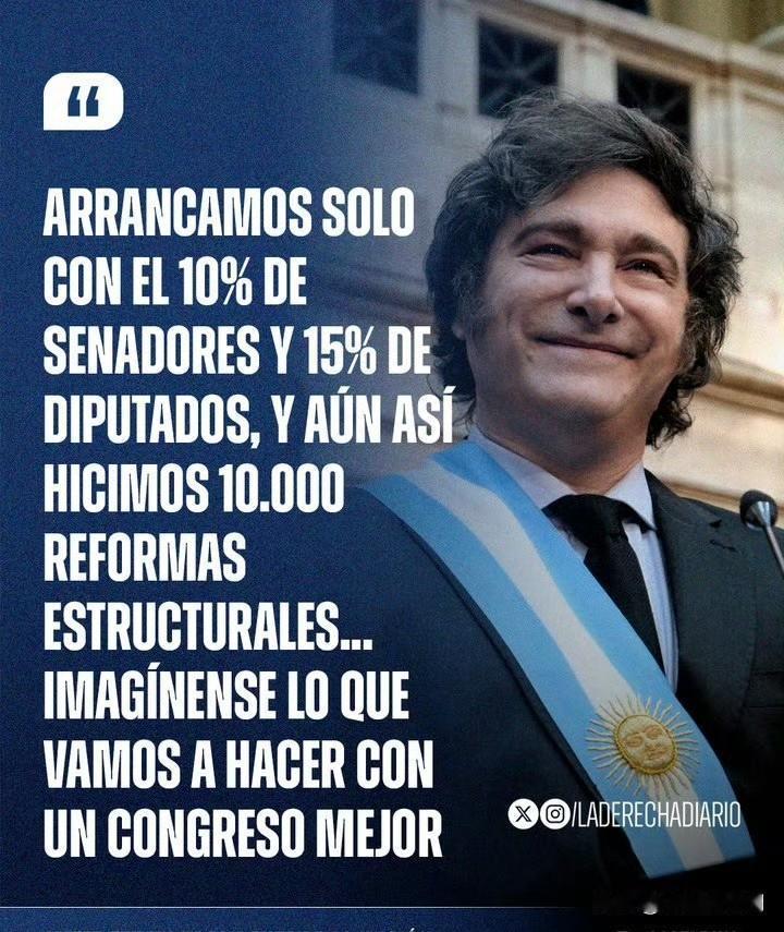 阿根廷正在进行立法选举,预计我们的北京时间明天才能知道结果。 对于米莱的自由前进党来说,获得两院多数票是很难的,但扩大两院席位是大概率。 米莱说:“我们一开始只有10%的参议员和15%的众议员,但我们却进行了10,000项结构性改革......想象一下,如果有了一个更好的国会,我们将做什么。” 也就是说只要两院的席位有所增加都对米莱治下的政经改革都有巨大帮助。