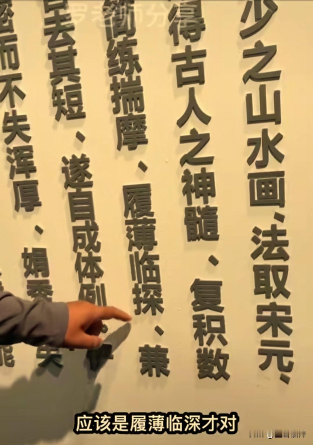 沈巍近日参观陆俨少博物馆的时候,指出了一个词“履薄临探”有个错别字,应该是“履薄临深”,此事引发热议。 陆俨少艺术院工作人员回应称,他们也没找到原文,他们查到的是当地一家报纸在2008年刊登的文章中,引用的这段话用的就是“履薄临探”,是否对错,他们还在核实。 小编网上查了这个成语有深厚文化渊源,正确形式是“临深履薄”或者“履薄临深”,出自《诗经·小雅·小旻》,“战战兢兢,如临深渊,如履薄冰”。形容做事时心怀戒惧,极其谨慎小心。 安徽大学文学院教授彭家法明确的指出,该成语有“临深履簿”“如履如临”等变体,但是没有“履薄临探”这一用法。 沈巍说作为一个读过书的人,对汉语有一定修养的人,读这个字的时候,就会觉得这个结构是不对的,履是动词,薄是形容词,临探是两个动词,这个结构就比较怪,是很明显的错误。 他说履薄临深这四个字无论是哪一个人都很适用,做官的能把履薄临深作为一个座右铭,他估计就不会成为一个贪官了。 如果作为一个普通工作人员,如果你能够天天履薄临深,那你工作肯定做的很认真。 如果你是一个司机,能够做到履薄临深,你每天小心翼翼的开车,那你的交通事故就会少一大半。 上海沈巍 沈巍论道 陆俨少精品展 陆俨少真迹