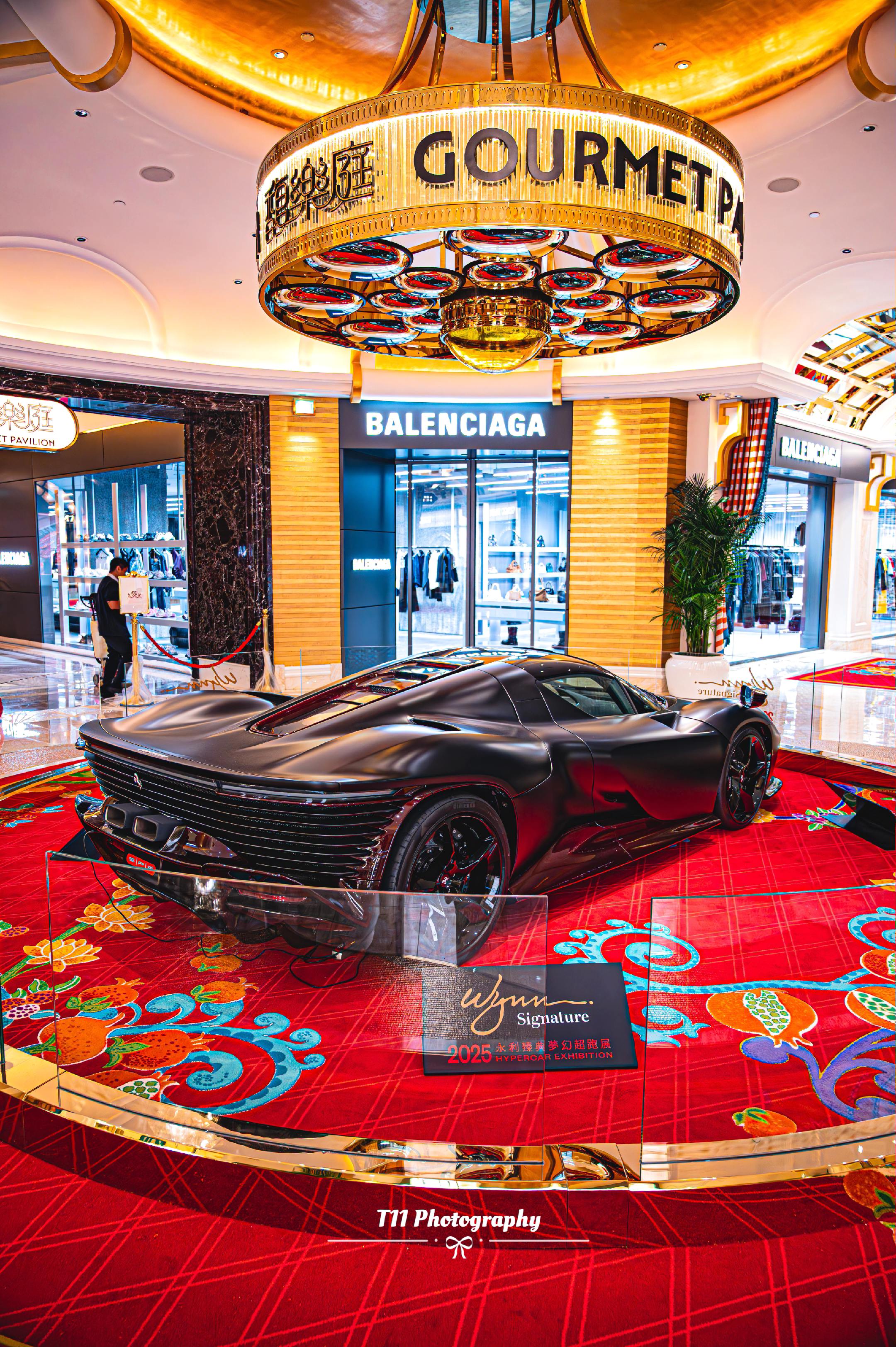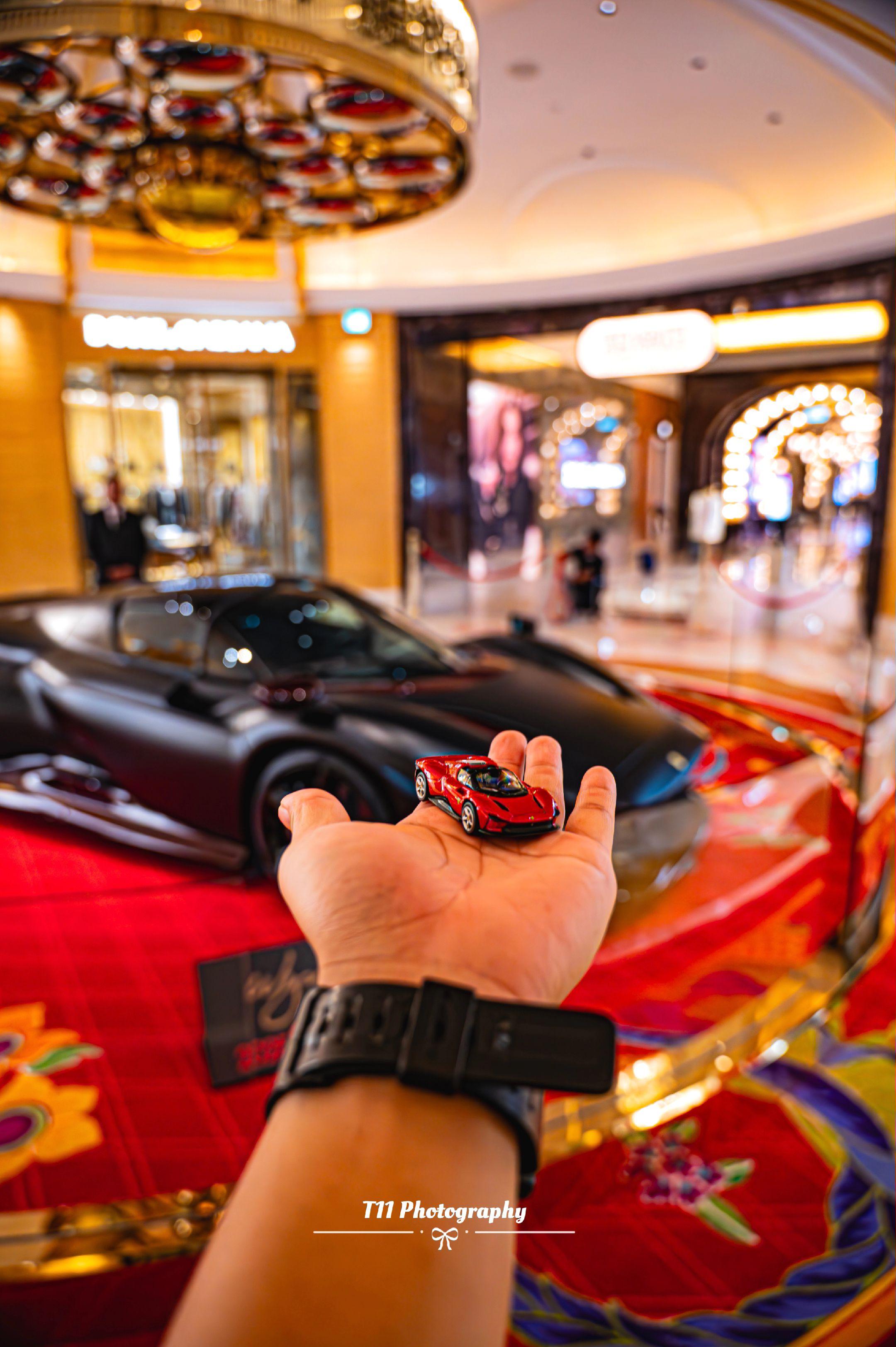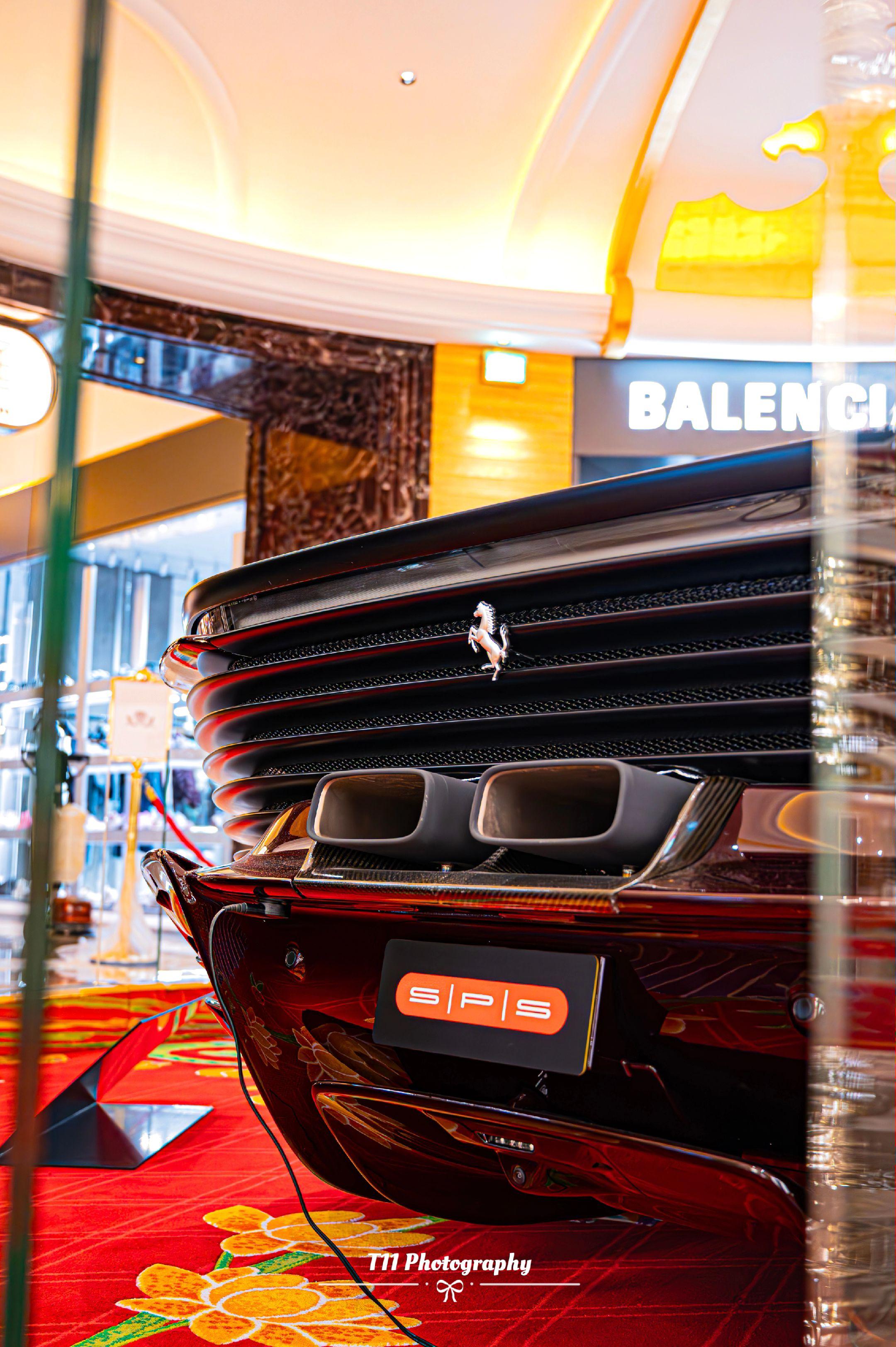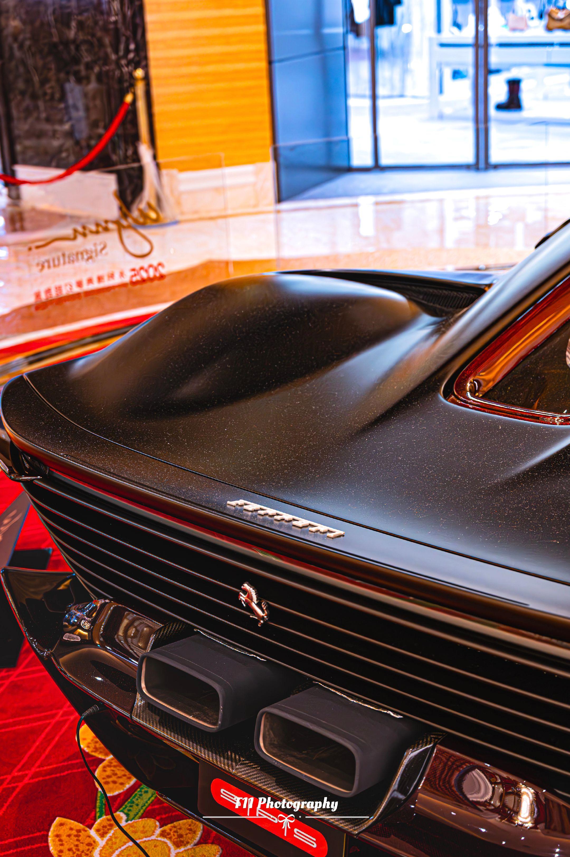 这个配色的法拉利Sp3全球只有一台。来自香港藏家Wong Collection的 Ferrari Sp3,独一无二的配色,磨砂黑的外观搭配深红色碳纤维,有幸能够拿着小车和真车合照了😍