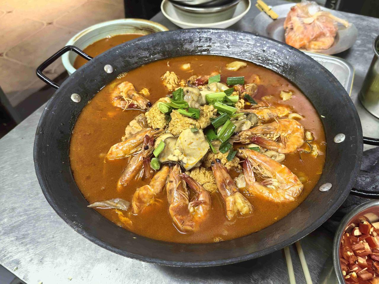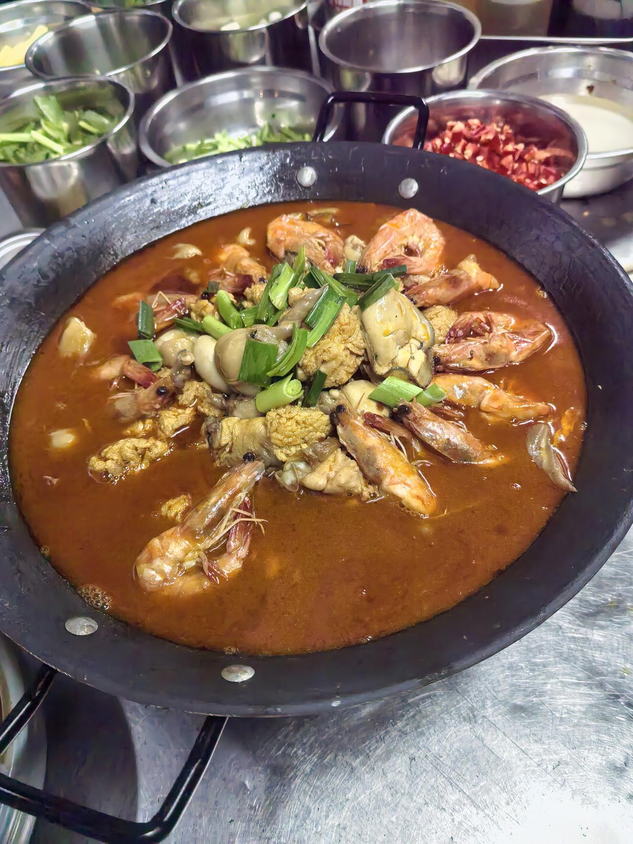 我的今日状态:💪🏻充满干劲 我这里的天气:🌤️多云厨师封神时刻!这锅“鲜货天团”吊锅刚上桌,客人拍视频发圈,连汤都要打包带走! 作为守着灶台讨生活的厨师,最治愈的瞬间莫过于:新菜端上桌的瞬间,满桌客人眼睛发亮,筷子“抢”着伸过来,吃完直拍桌喊“再来一锅”——今晚这道鱼杂基围虾生蚝鸡腰子吊锅,直接把后厨的烟火气熬成了客人嘴里的“神仙味道”! 刚把吊锅往炭火上一放,滋滋冒泡的红油就裹着鲜香气往鼻尖钻。掀开锅盖的刹那,满桌人都“哇”出了声:锅底铺着满满一层鱼杂,鱼籽颗颗饱满像撒了把琥珀粒,在汤里滚得发亮;鲜活基围虾还带着点弹动,红壳裹着秘制酱汁,虾头里的膏脂快要溢出来;肥嫩的生蚝卧在汤中,吸足了鱼鲜和酱香,轻轻一夹就颤巍巍的;最后丢进去的鸡腰子,圆滚滚透着粉嫩,煮得Q弹不腥,每一口都是实打实的“硬菜感”。 懂行的老客都知道,这锅鲜的关键藏在“食材和顺序”里:鱼杂选的是当天现杀的鲜货,反复用料酒+姜片搓洗去腥味,先下锅熬10分钟,把浓鲜底味逼出来;基围虾挑带膏的母虾,煮3分钟就捞,保准咬开全是清甜;生蚝是当天冷链到的,带壳煮到开口就关火,锁足海味;鸡腰子用温水汆过去血沫,最后下锅焖5分钟,吸满汤里的鲜劲儿,口感绝了。 客人夹起一筷子鱼籽配生蚝,刚入口就眯眼笑:“这鲜味儿太顶了!鱼籽爆珠,生蚝爆汁,裹着红油的香,一点不腻!” 还有人专挑鸡腰子吃,边嚼边夸:“煮得刚好,嫩得像豆腐,还带着虾的甜!” 更绝的是,吃到最后有人端着碗要舀汤,说“拌米饭能吃三碗,这汤倒了可惜”,连邻桌都被香味吸引,凑过来问“师傅,这锅能加单不?” 看着客人吃得满脸满足,连汤汁都不放过,突然觉得:厨师的快乐真的很简单——用最新鲜的食材,熬出一锅让人忘不掉的味儿,听着大家一句句“好吃”,所有的颠勺、熬夜都值了!打工人厨房日记 厨房工作照 吊锅鱼杂 吊锅杂鱼一锅鲜 中餐火锅吊锅 吊虾锅 鲜我的厨房日记