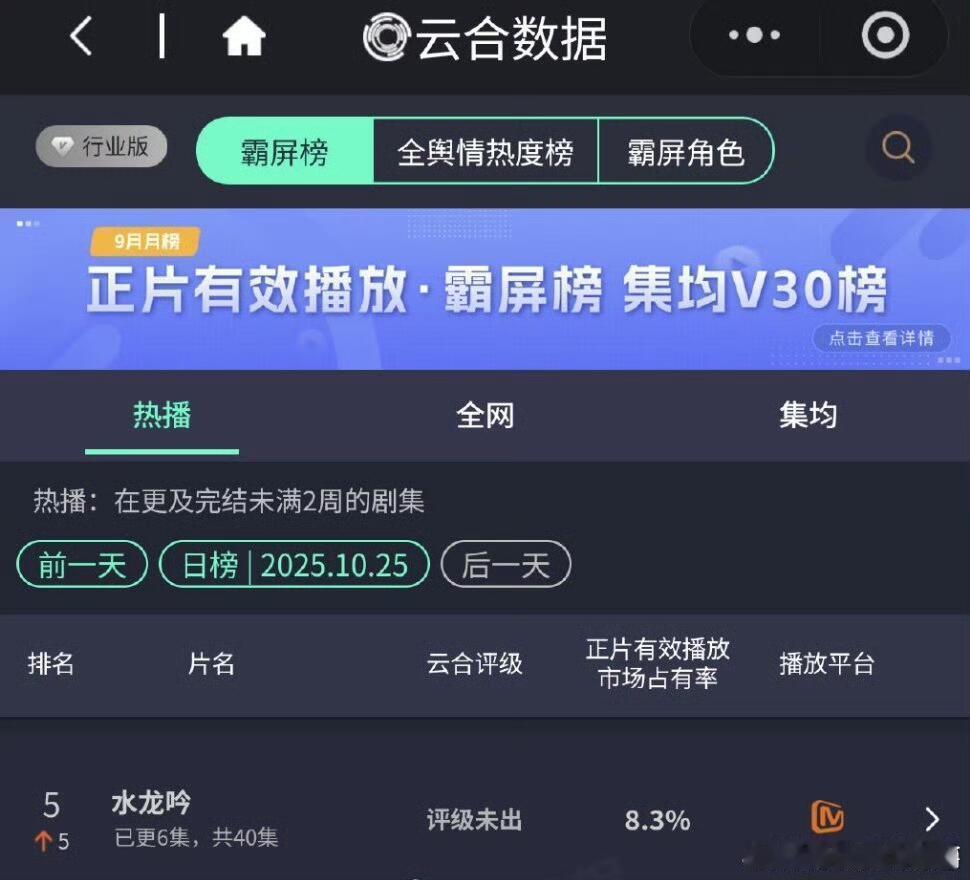 水龙吟播出第二天,云合市占率8.3%,较前日涨了近两倍!这下真爆开了🎉