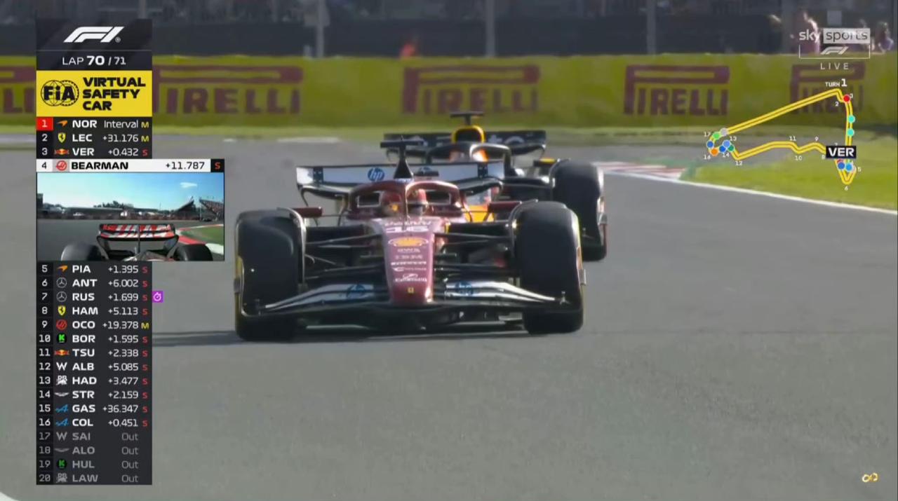 70/71,最后一圈,塞恩斯的车停在围场上,虚拟安全车出动,乐扣和贝尔曼的位置算是守住了,大家喜忧参半。 诺里斯积分反超皮亚斯特里已成定局。总冠军悬念依然很大……