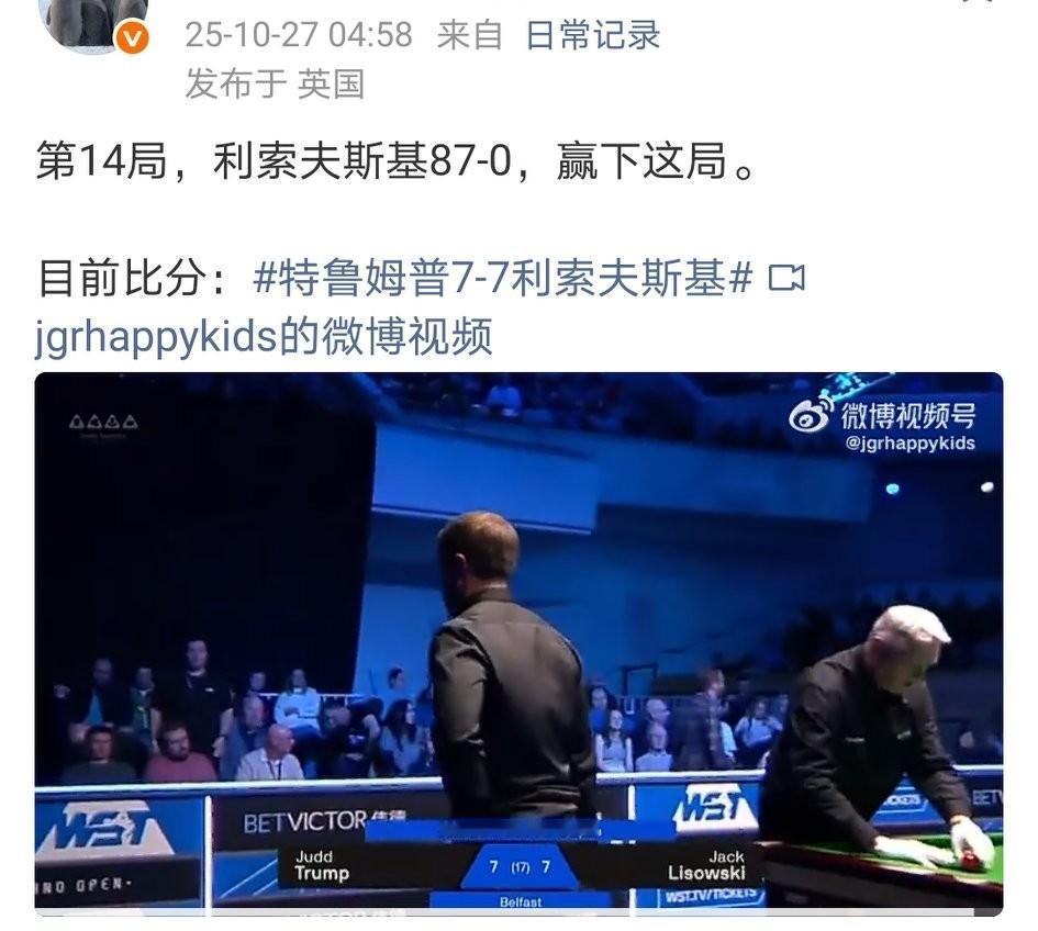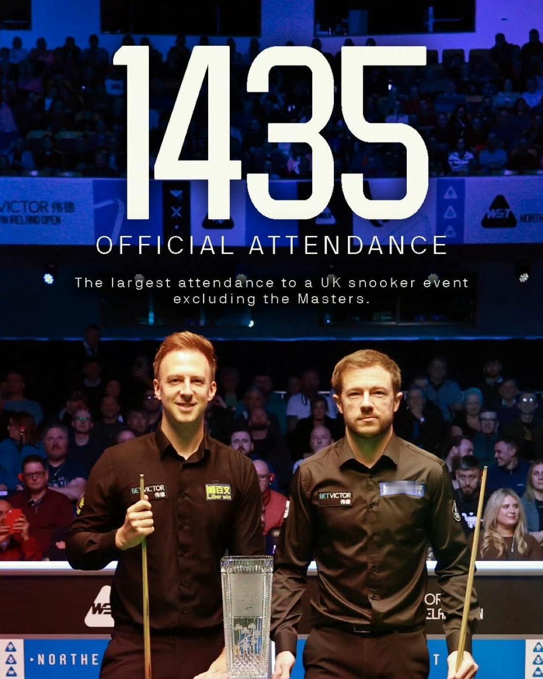 1435!2025斯诺克北爱尔兰公开赛决赛,观众人数爆棚!这一数字创下英国本土赛事中仅次于大师赛的第二高上座率。 特鲁姆普7-7利索夫斯基,两人再度战平。17局9胜,只剩下3局2胜了。