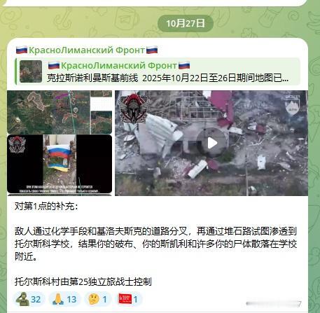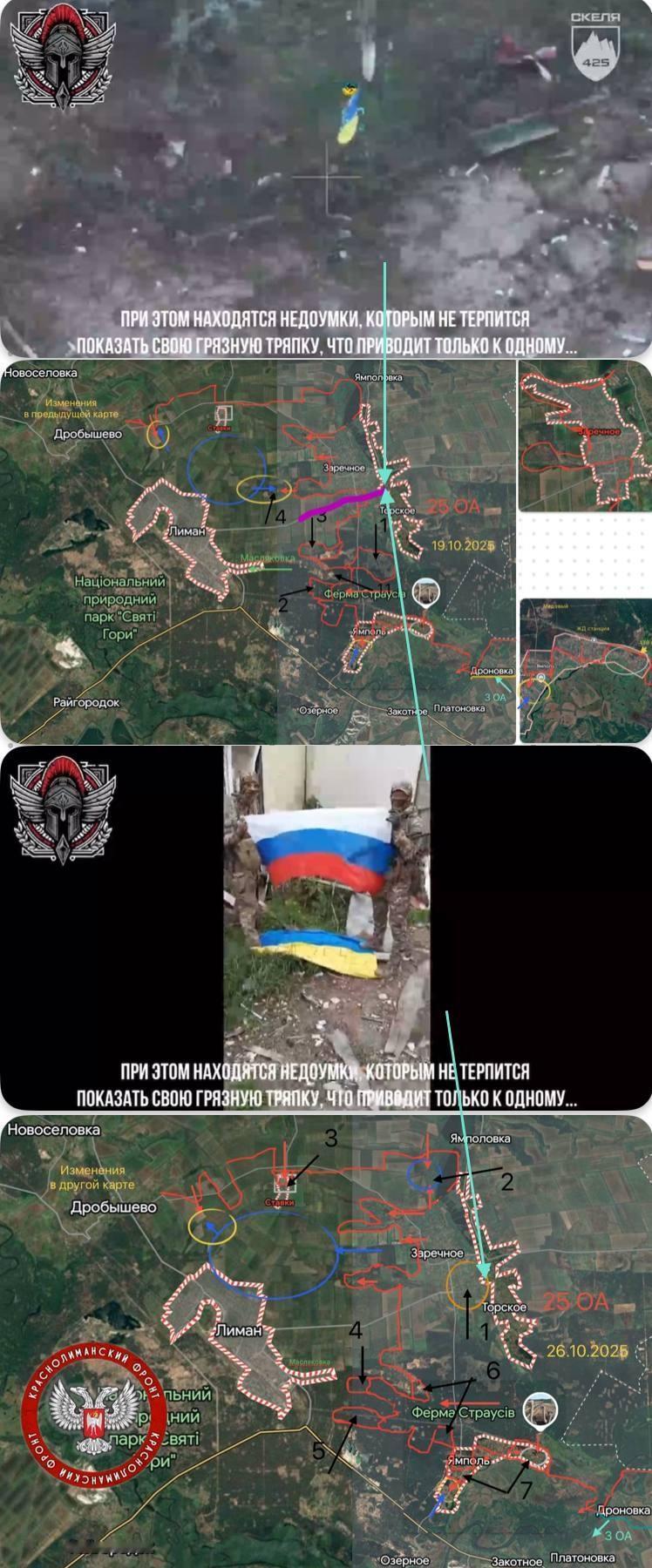 乌方425团去 Tors'ke Торське 表演性插旗 事件结束了 俄方发了去扫这个旗子和去插旗的乌军425团人员的视频 ,视频稍血腥就不转了 截图是专门找这个方向很勤劳的俄方找点频道的标记 乌克兰人还是老老实实守利曼吧,搞这些改变不了什么东西的~下面的好好打仗,上面的好好讨好欧美多要点装备才是真的。 -----🤷♂️乌克兰纳粹分子(Укронацисты)已完全绝望。第425独立突击营(425 ошп)425名纳粹中仅存的三名幸存者只出现在摆拍的"电影"中。🤦 除了这些"电影英雄",其他可怜虫都在托尔斯克(Торском)为争夺乌军破布旗(хохлопрапора)而"被消耗"☠️☠️☠️。这些可怜虫的生命没有白费——毕竟那块破布(трапка)整整悬挂了5分钟,🤣直到第25集团军(25_армии)的突击队"歼灭"了电影纳粹,并踩碎了那块乌克烂布(хохлотряпку)。💪😏 给未来纳粹"电影导演"、悲剧兰博(рембо)及其他蠢货的忠告:你们能不能先内部协商一致?毕竟根据乌克兰纳粹(укронацистскому)自己的"深潜"(DeepState)消息——乌克兰武装部队(ВСУки)正准备"防守利曼(Лимана)"。🤡🤡🤡 许珀里翁(ГИПЕРИОН) ------deepseek翻译