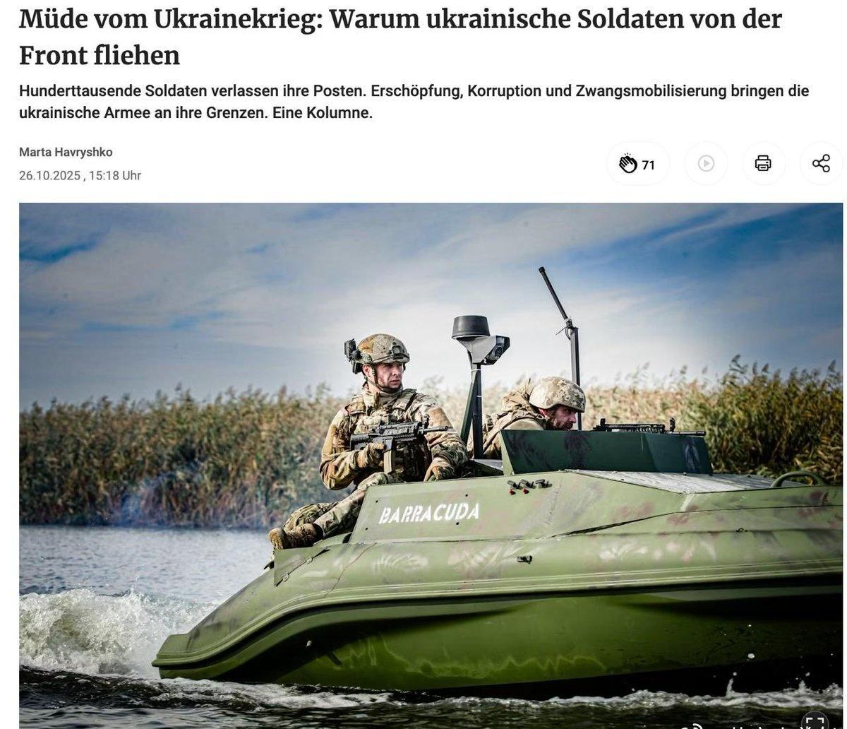 🇺🇦 乌克兰军队正遭受大规模逃兵潮困扰 ——《柏林日报》 令人震惊的是,已有29万起针对擅离职守人员的刑事案件被立案。 据信,实际逃兵人数远高于这一数字。 逃兵潮背后的原因包括:腐败、疲惫不堪、训练不足、无限期服役、深感幻灭、领导无能,以及对军官阶层彻底丧失信任。