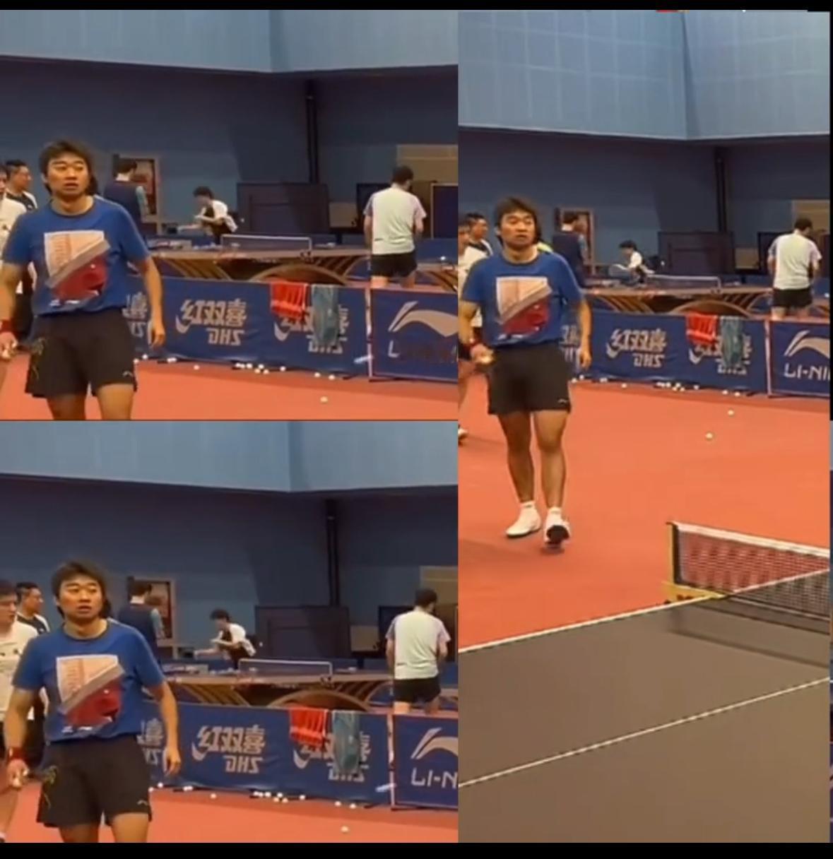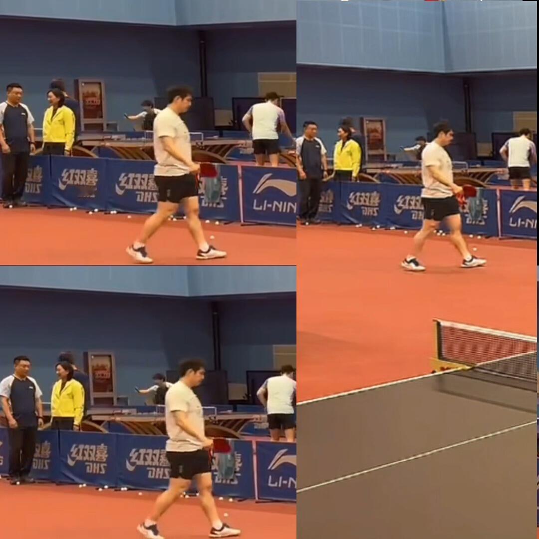 东哥练球,子豪也在一起,一个黑,一个白的发光,这俩真是喜剧,看着就是很开心了! 短裤短袖真好,打球就要打尽兴,舒舒服服的出汗,热爱的乒乓球事业出一份力,不用发光发热也很满足,要的很简单! 魁梧的身材,看着强劲,这样真好,小胖有力气打球!