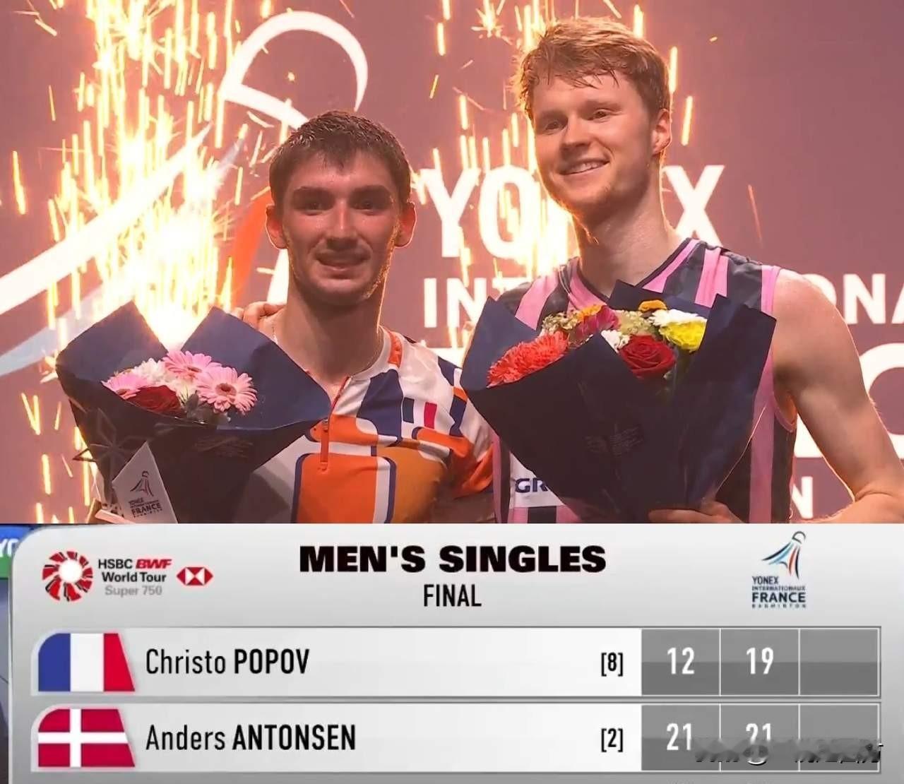超级750法国羽毛球公开赛昨晚落幕,中国队参加三项决赛,仅拿到混双冠军,女单和女双拿到亚军,韩国队收获两项冠军。混双决赛,冯彦哲/黄东萍以27-25,、21-12击败泰国组合德差波/苏皮萨拉,成功卫冕,豪取本赛季第七冠,女单决赛,王祉怡再次惨败给安洗莹,女双决赛,李怡静/罗徐敏不敌日本组合福岛由纪/松本麻佑,男双决赛,韩国名将金元浩/徐承宰战胜印尼组合夺冠,压轴进行的男单决赛,丹麦名将安东森顶着东道主观众一边倒的助威声,横扫法国的小波波夫夺冠。