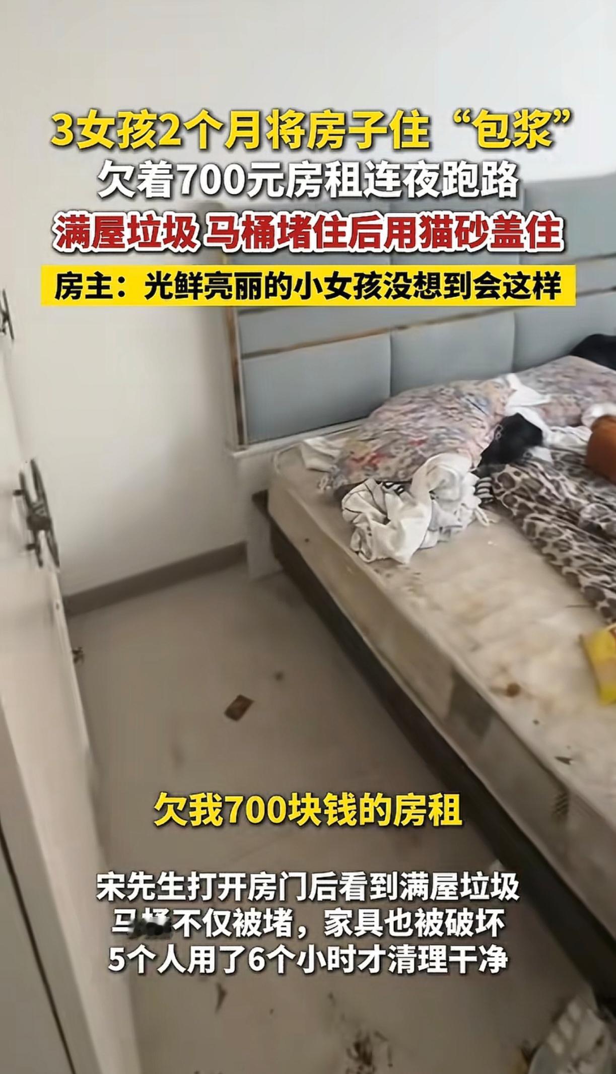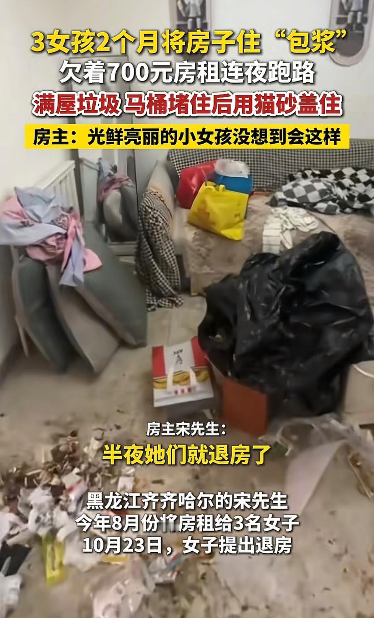 有些人表面上光鲜亮丽的,背地里却脏了吧唧的。租出去的时候干干净净的房子,退回来的时候都住包浆了。房间堆满了垃圾,马桶被堵,只让人犯恶心,6个人需要搞半天才能搞干净。这房东怕是有阴影了,以后不会随随便便把房子租给别人了吧。 据说租房的是三个女生,已经跑路了。看来是脏的自己都住不下去了。我还以为小仙女都是香香的呢,看来小仙女也不都是爱干净的啊[泪奔]。