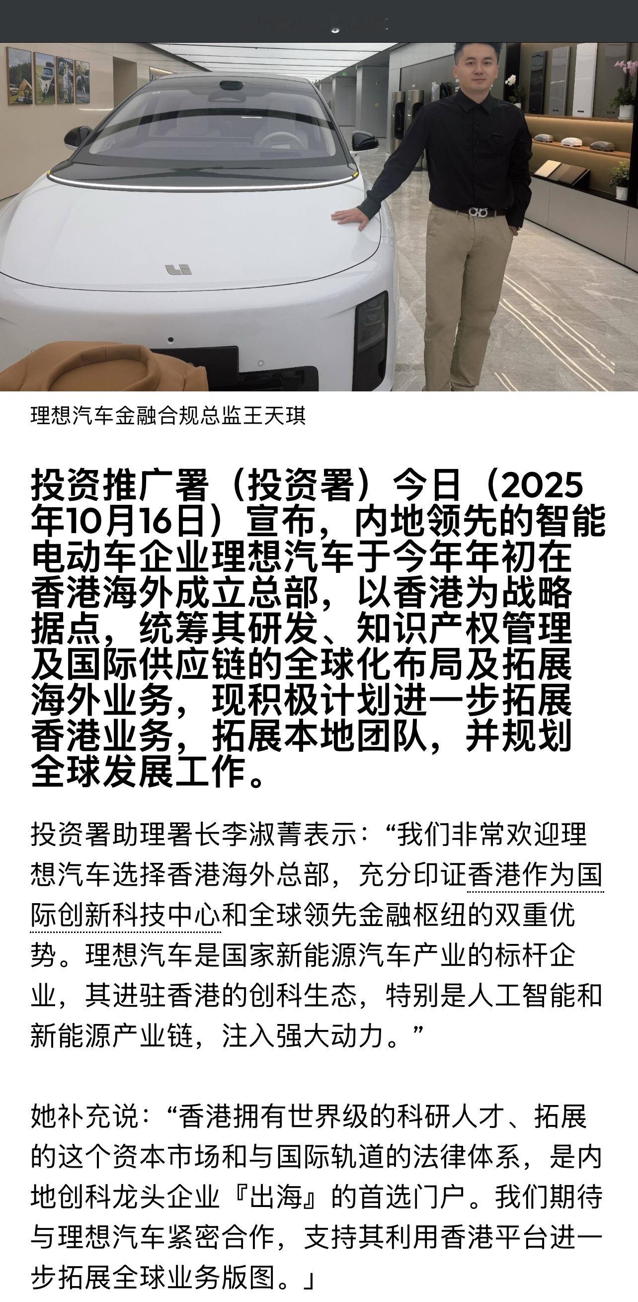 理想出海的野心,绝不止于套娃式发布新车。它正在下一盘全球大棋—用香港的金融与制度优势,铺平通往全球的路。