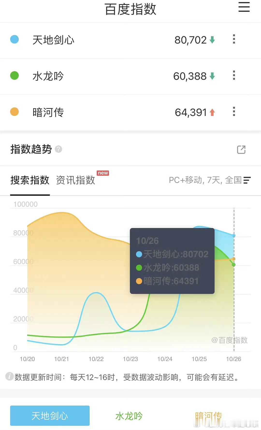 10.26三部新戏百指来了,也是天地剑心的次日,比首日低了