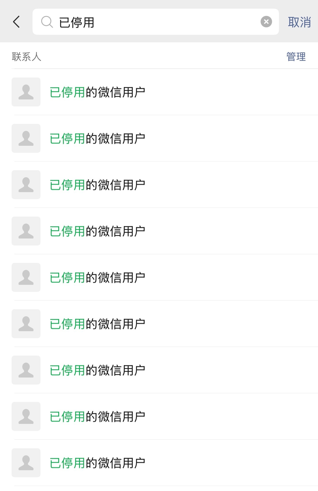 微信通讯录搜关键词“已停用”,然后回来点赞![doge]