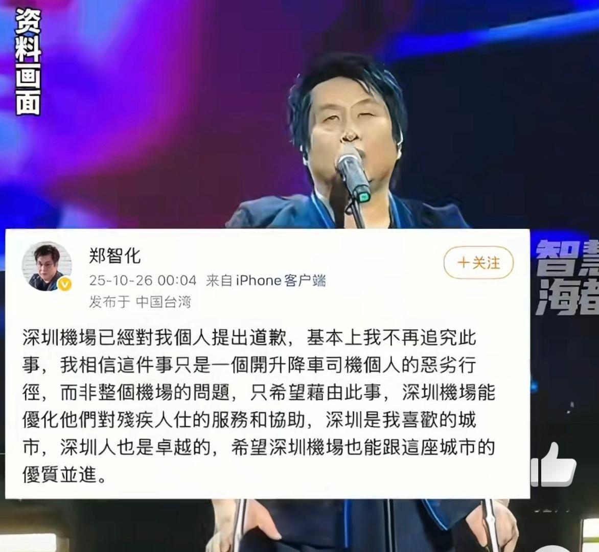 郑智化 没有连滚带爬了可是这明明是服务人员全程帮助郑智化啊,虽然我挺喜欢你的,但这个多少有些抹黑机场了。[流汗][流汗]