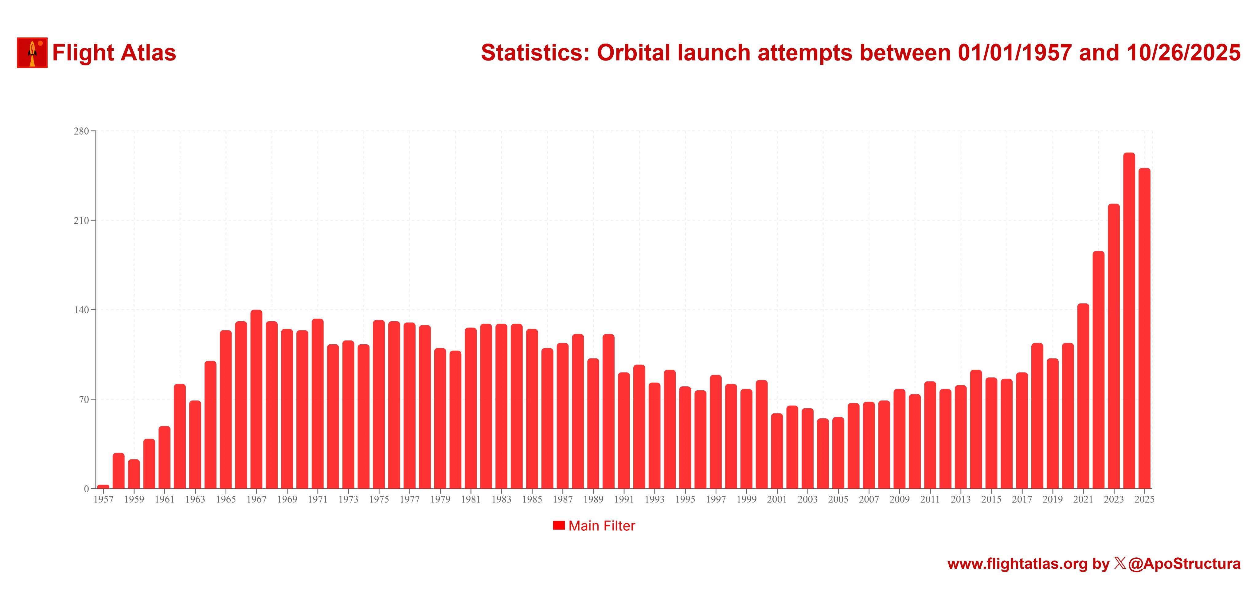 截至今天;全球本年度已进行249次发射,距离结束还有2月有余,本年度发射次数有望突破290次以上。