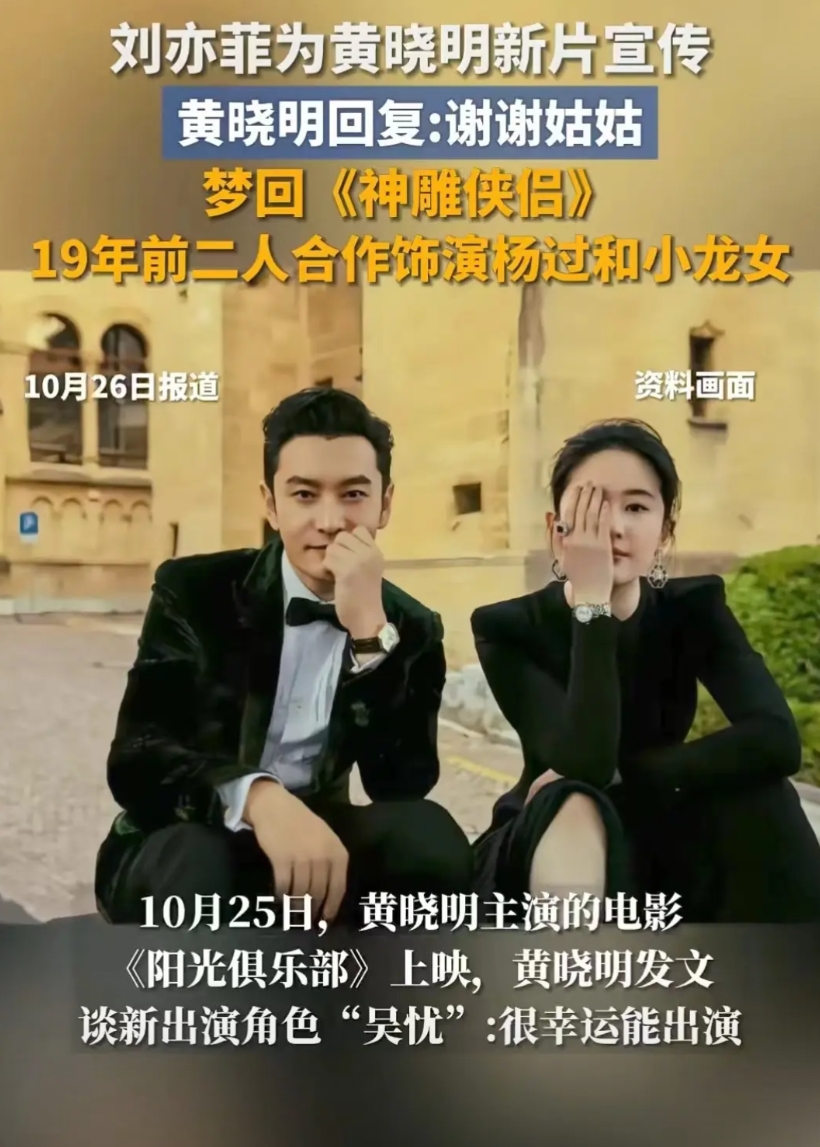 沉寂的娱乐圈又复活了! 原来他们都会说话。 黄晓明呼吁大家支持电影! 刘亦菲为黄晓明新片宣传。 黄晓明回复:谢谢姑姑。 为了电影票黄晓明真的太拼了。 我们把黄晓明想的太简单,太单纯,他藏的挺深啊。 可惜我们不追星,追光。 仙女宣传我们也不看,谁来都一样,不看! 天冷了,还不如给自己买件羽绒服呢。 大家去看不?