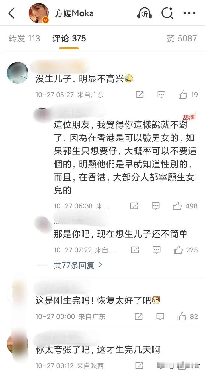 方媛,幸福发文! 10月26日23时59分,方媛非常高兴的发文祝福老公郭富城生日快乐,照片中的郭富城笑得非常开心,而方媛则非常令人意外。 想不到她的身材恢复的那么快,照片中完全看不出她其实才生完孩子没几天,这点真的是天生丽质,太让女生羡慕了,看这身体这么好,说不定还会再生几个,就看郭富城舍不舍得了。 有人觉得夫妇俩没有生到儿子不高兴,这肯定是误解或者错觉,郭富城的财力和当地的法规都能证明人家并没有想象的那么在乎性别。 其实从优育的角度看,郭富城生女儿比生儿子好,因为女儿更容易继承爸爸的基因,像爸爸的几率更高。