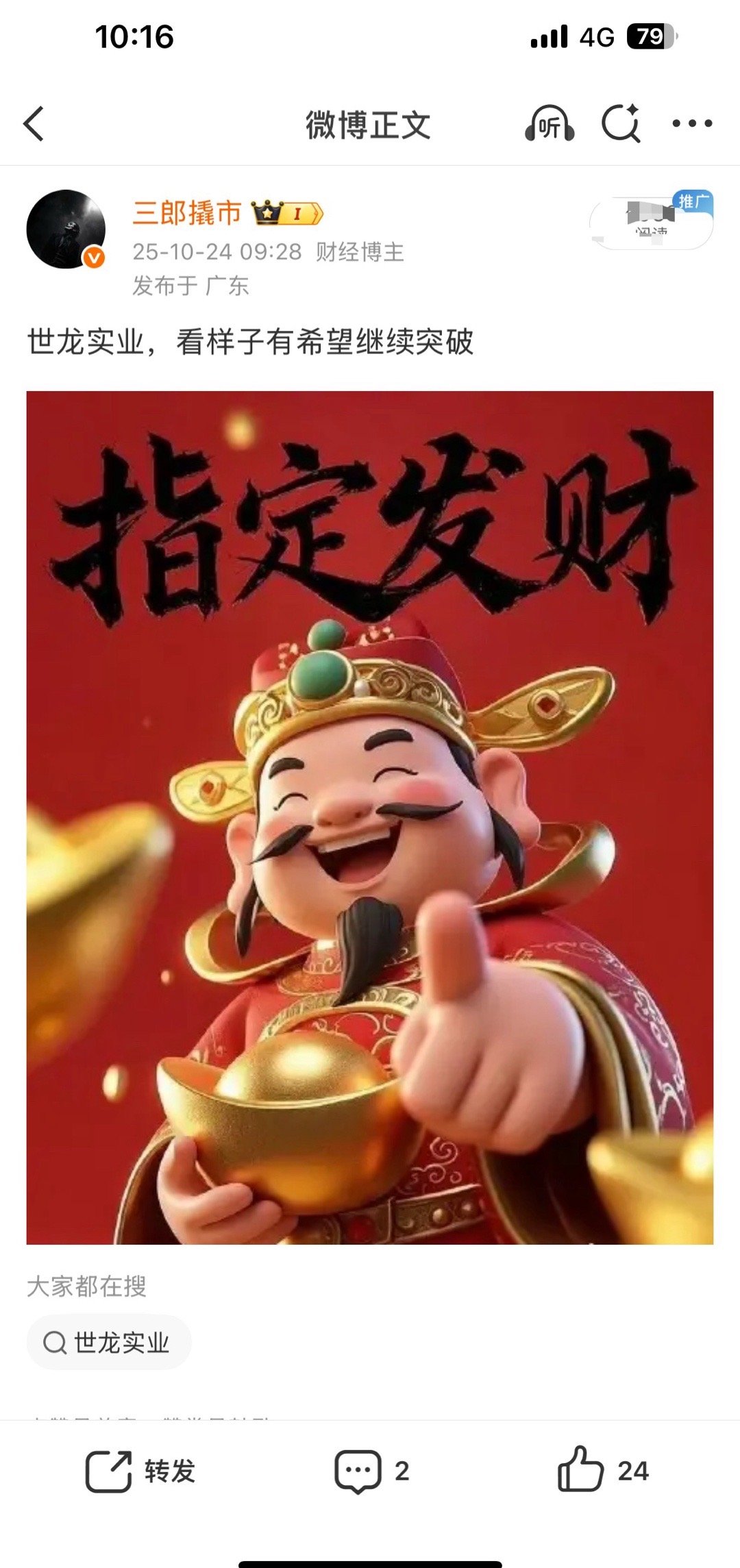 股友们,今天世龙继续突破涨停,跟上的又吃大肉了。跟上在下方发888