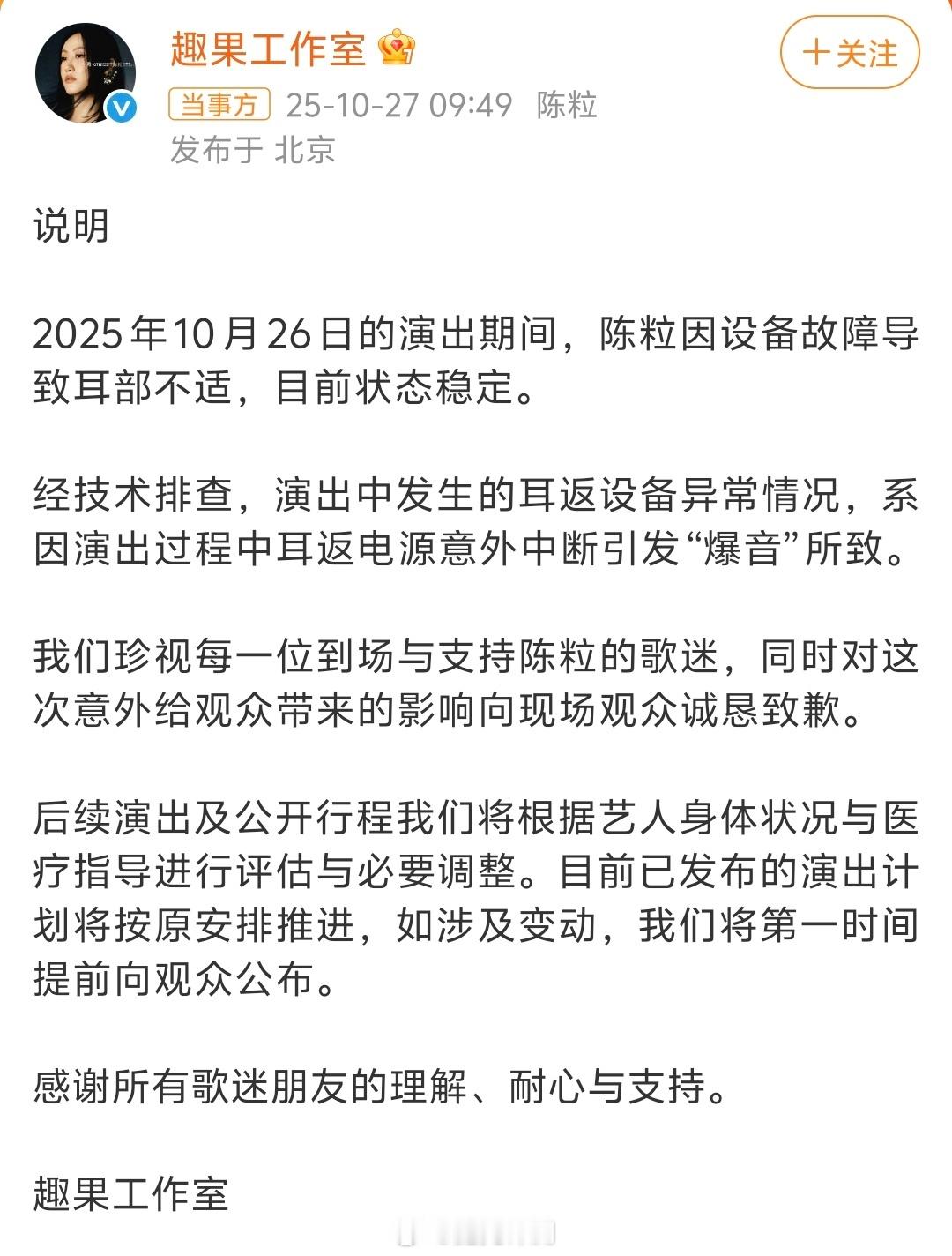 陈粒演出时耳机爆炸不是真的耳机爆炸,而是耳机突然爆音,估计也是一声巨响,120分