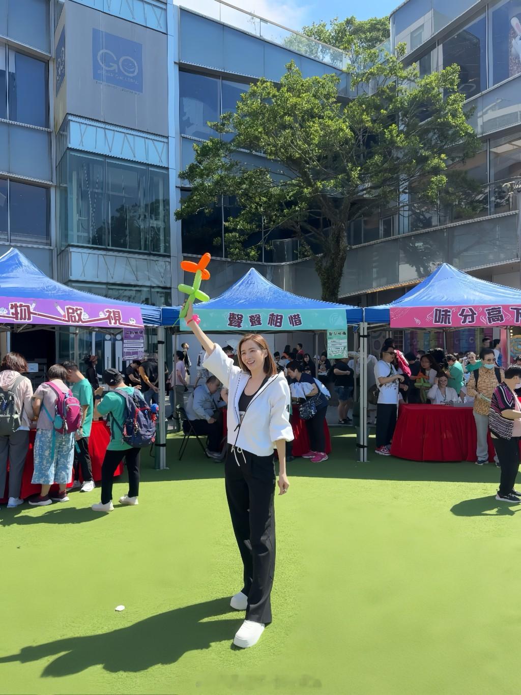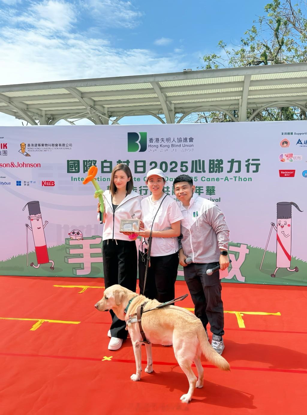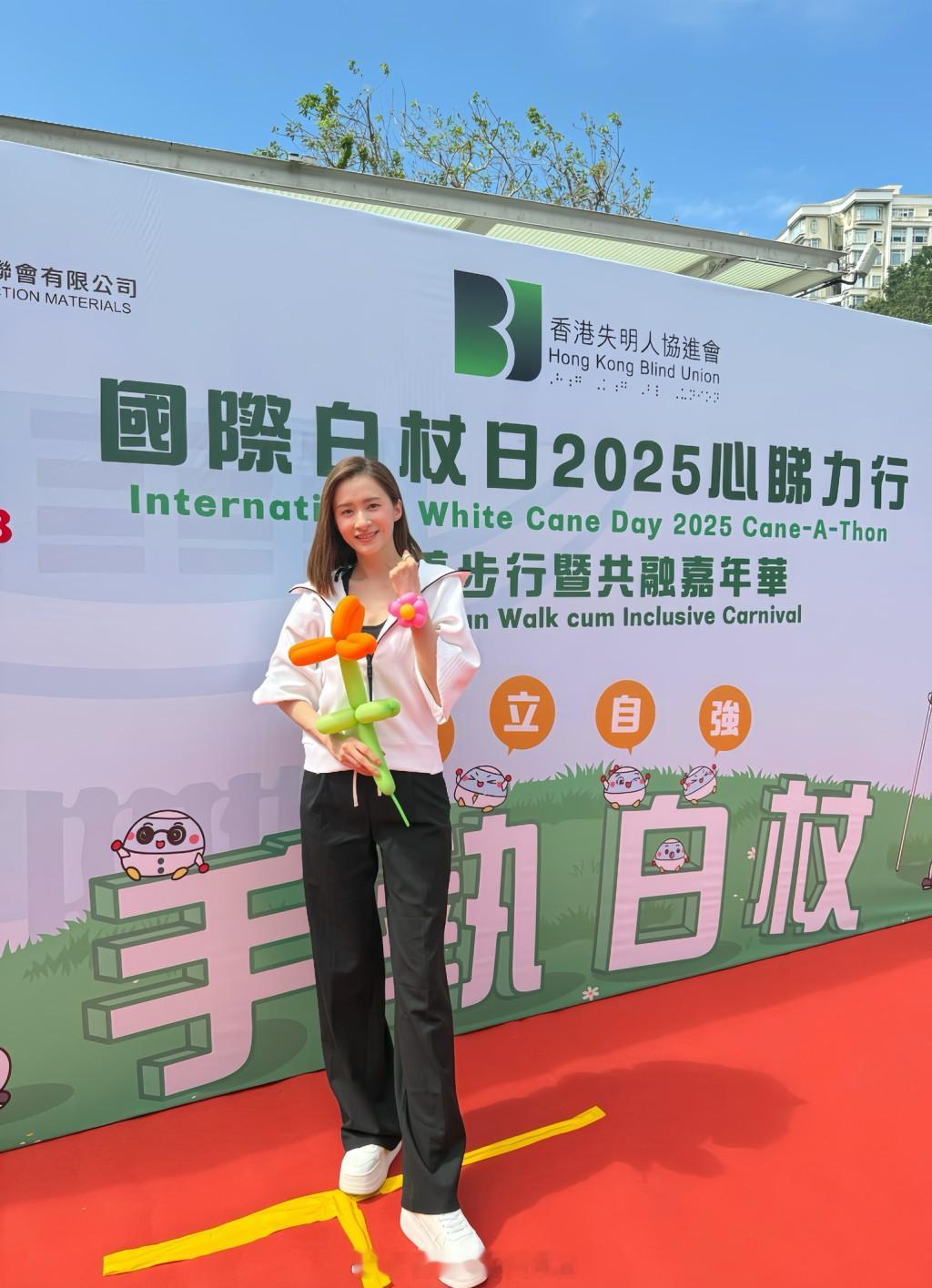 为响应一年一度的"国际白杖日",沈卓盈(Jessie)今日以"爱心大使"的身份,出席香港失明人协进会假山顶道花园举行的"心睇力行"慈善步行暨共融嘉年华,Jessie亦在现场不同摊位亲身体验视障挑战。