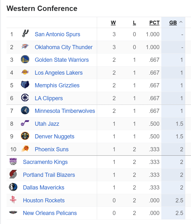 今天比赛结束后的西部排名👀