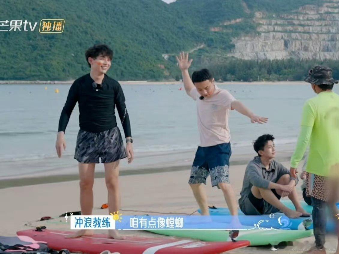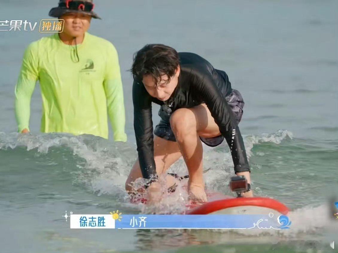 齐思钧这回真乘风破浪了 沙滩上和徐志胜对着练动作,互相打趣没个正形,一入海立马“收心”,稳稳滑行气场全开。海角88号
