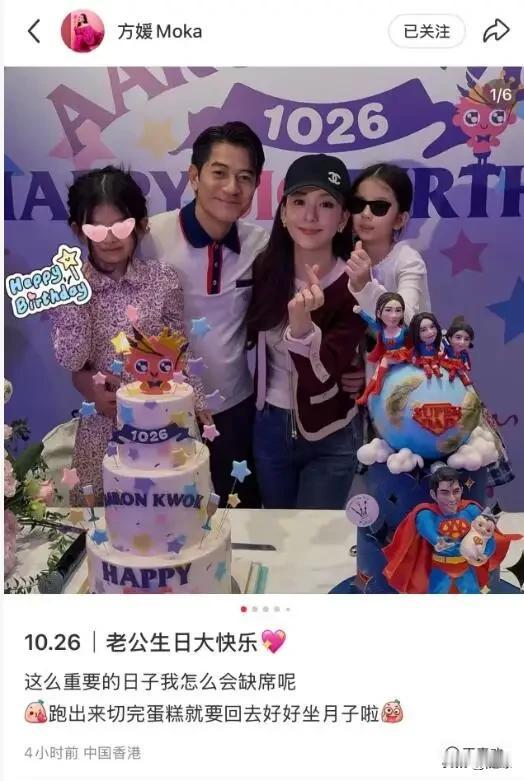 10月26日,郭富城老婆方媛产后才4天,坚持为老公庆祝60岁生日。 就是不知道,这个重要的日子是不能缺席被迫营业?还是把老公看得特别重要不想缺席?现在的她,应该是在月子中心坐月子才是,毕竟才卸货几天而已。 不过,值得注意的是生完孩子才4天的方媛,身材已经恢复的如此之好。她酒红色针织开衫搭配牛仔裤,身材显得很纤细,很高挑,脸色也很红润,状态看起来是相当的好。看来,方媛在老公郭富城的呵护下,生活确实过的很幸福,很富足,很满足!